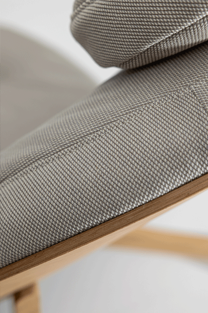This expressive gesture makes the lounger appear sculptural and is at the same time an invitation to make yourself comfortable – put your feet up on ZENSO POUF. The striking cross-wood frame supports and carries the cantilevered back shell. The adjustable head cushion can be individually adjusted to the respective size. The lounger is characterised by a high level of seating comfort.