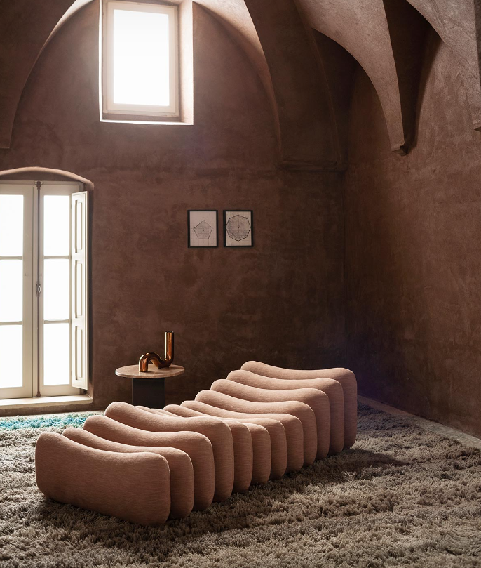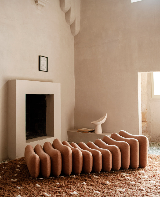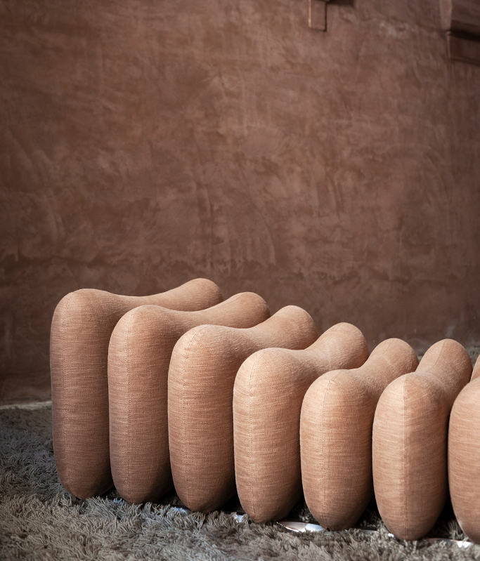 Modules with unusual shapes give life to original seating configurations where aggregation and variability take center stage. Additional System is a project by Joe Colombo from 1967, reimagined today by Tacchini while respecting its original spirit: a modular system with timeless allure, still “futuristic” even 50 years later. Cushions of six different sizes, inspired by ergonomic studies of the 1960s, come together in dynamic and flexible combinations created by varying the number of elements and how they are positioned. Additional System is available in armchair, pouf, and daybed versions.