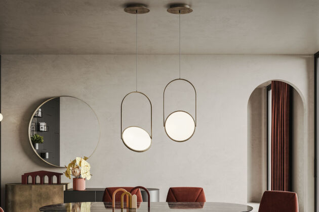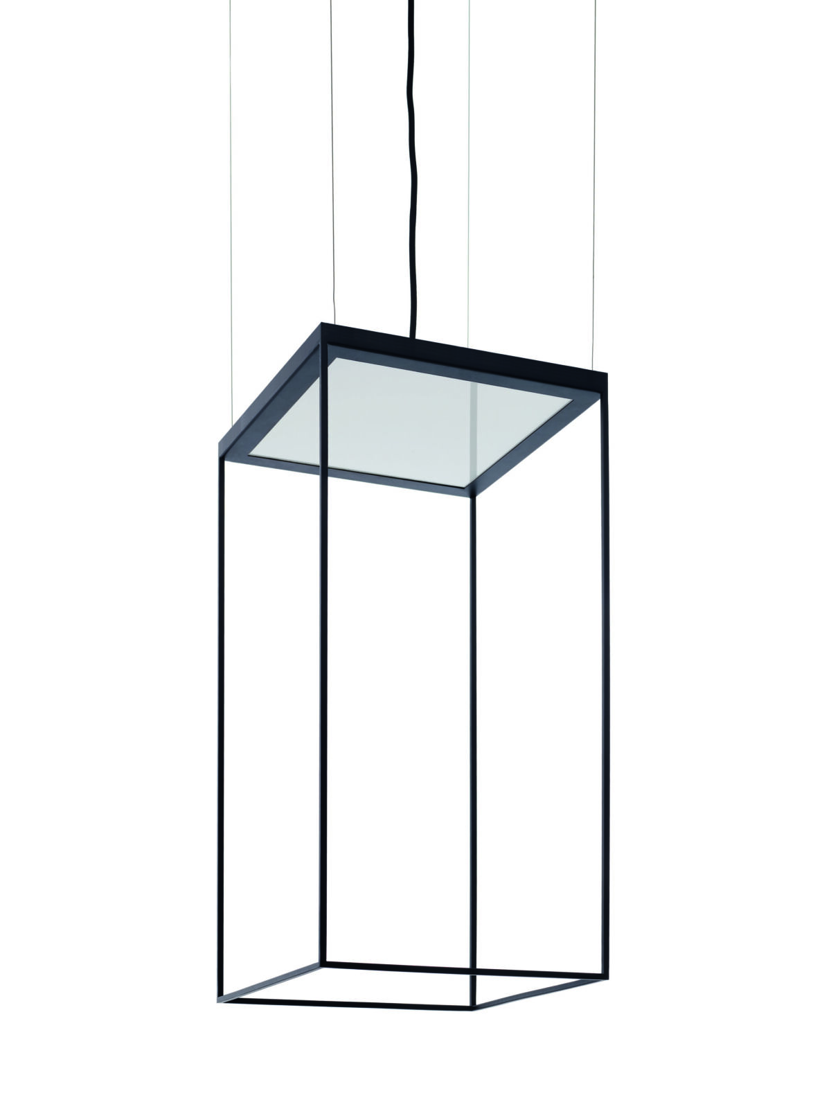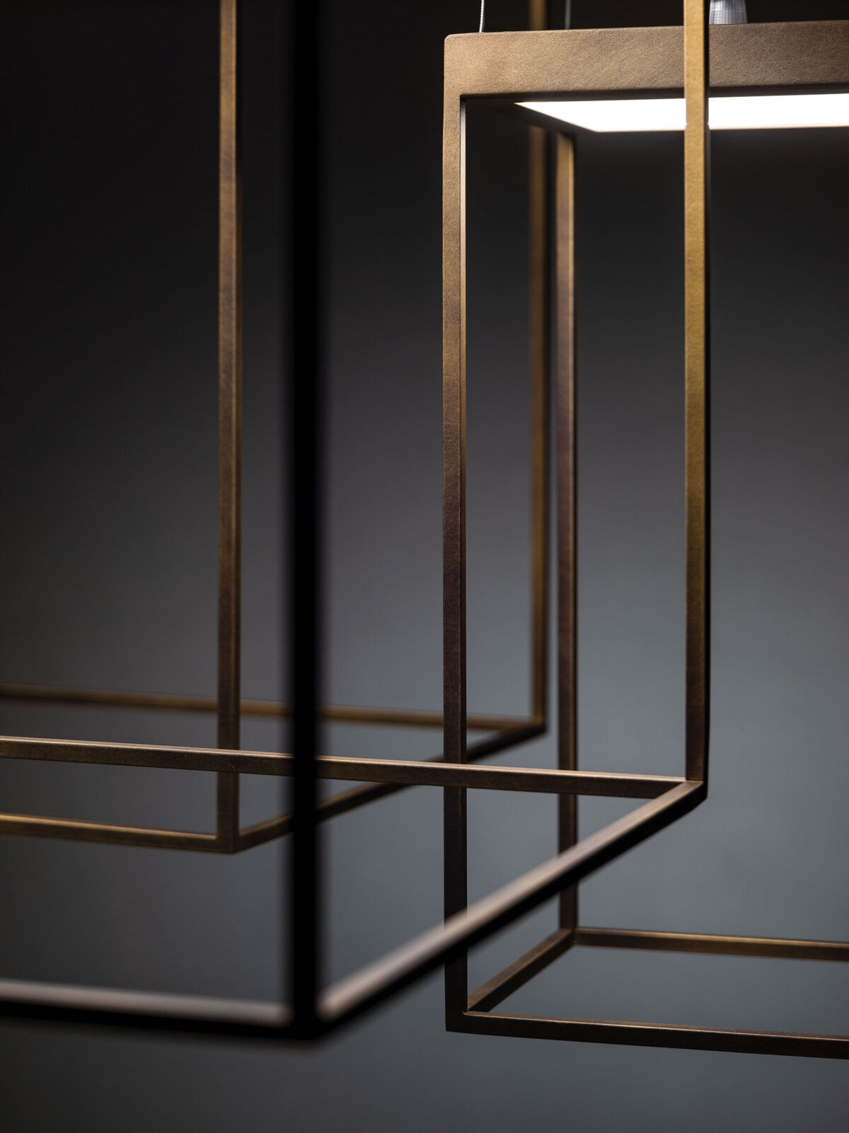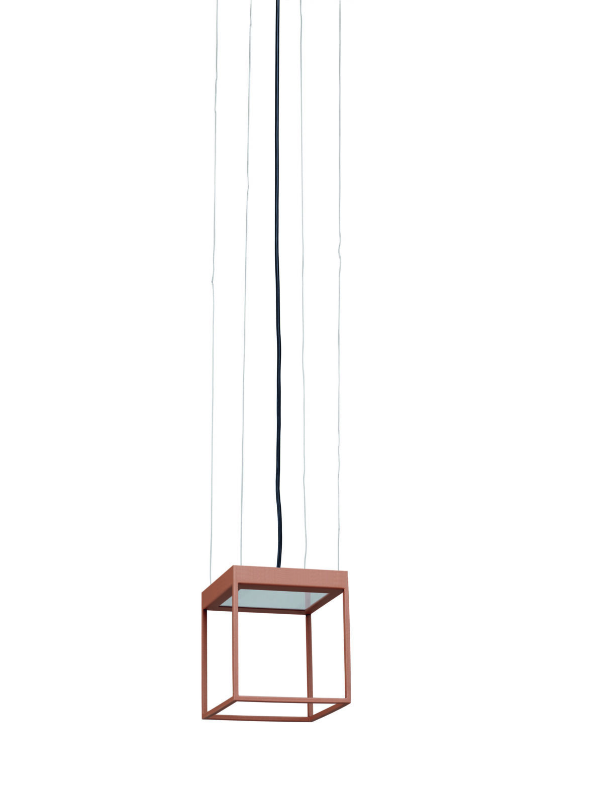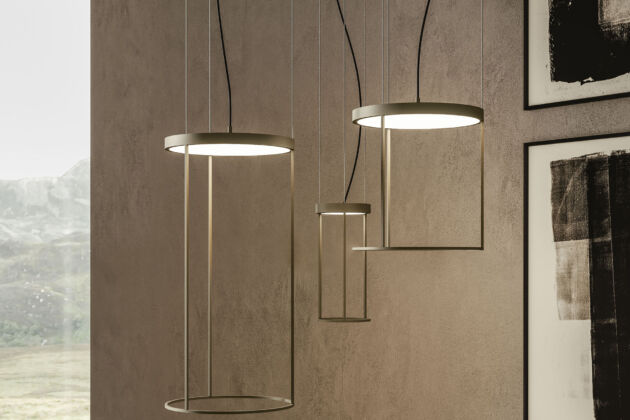 Chandelier in painted metal with LED lighting plate. Steel supporting cables, standard cable length 1,2 mt. included. Electric cable available in silver or black finishing. Brassie is available in 4 sizes. Each pendant lamp can be used alone or in groups of 3/ 4 / 5