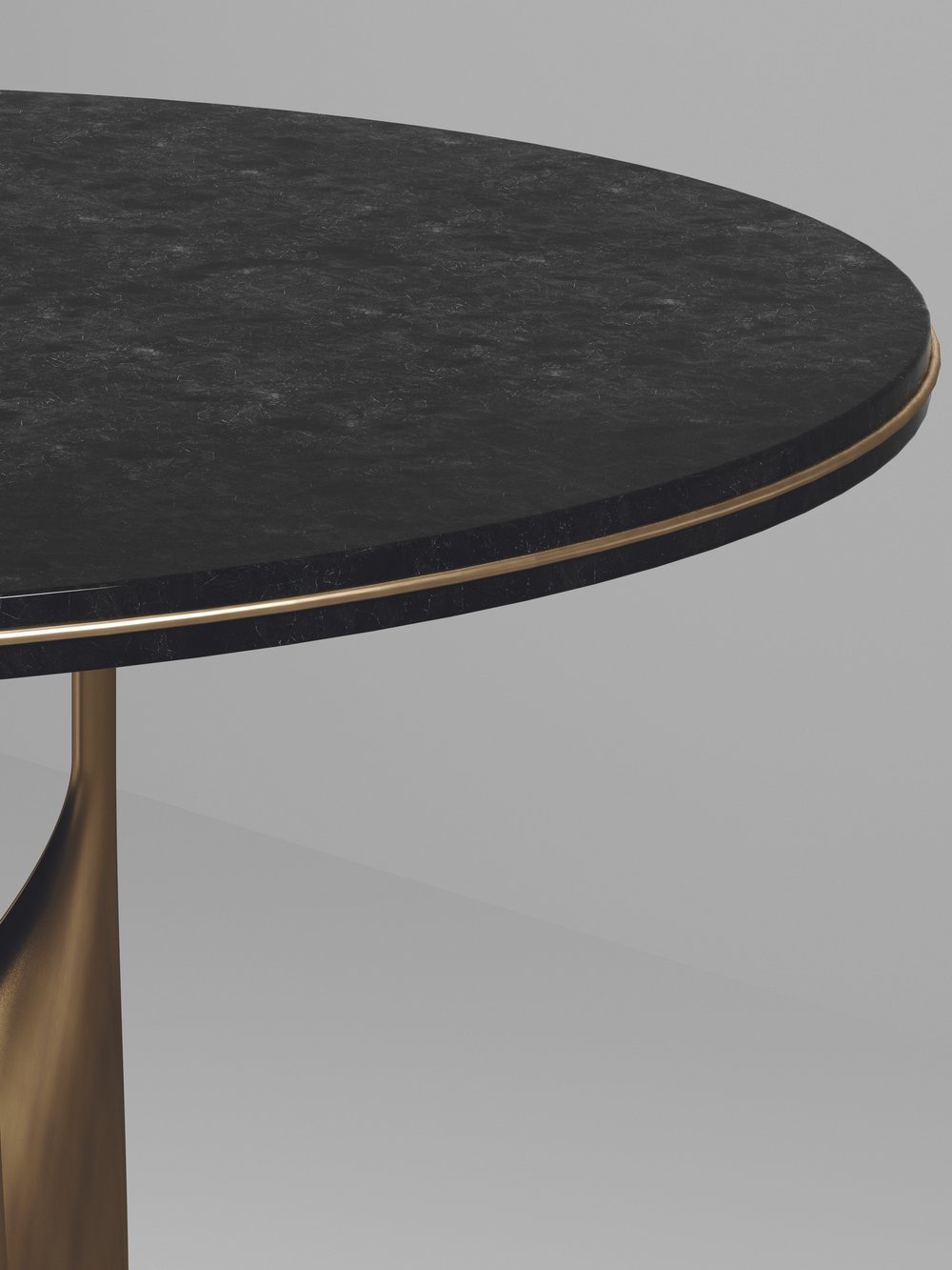 The Plumeria breakast table by Kifu Paris is a dramatic and elegant piece. The cream shagreen inlaid top sits on a sculptural bronze-patina brass base that is conceptually inspired by bird feathers floating on top of a lake. The border of the top is accentuated by a subtle and elegant bronze-patina brass indentation detail. This piece is designed by Kifu Augousti the daughter of Ria and Yiouri Augousti. Available in other finishes. Part of the Plumeria Capsule.