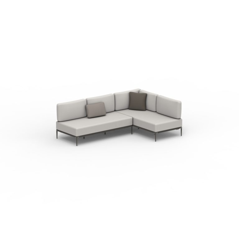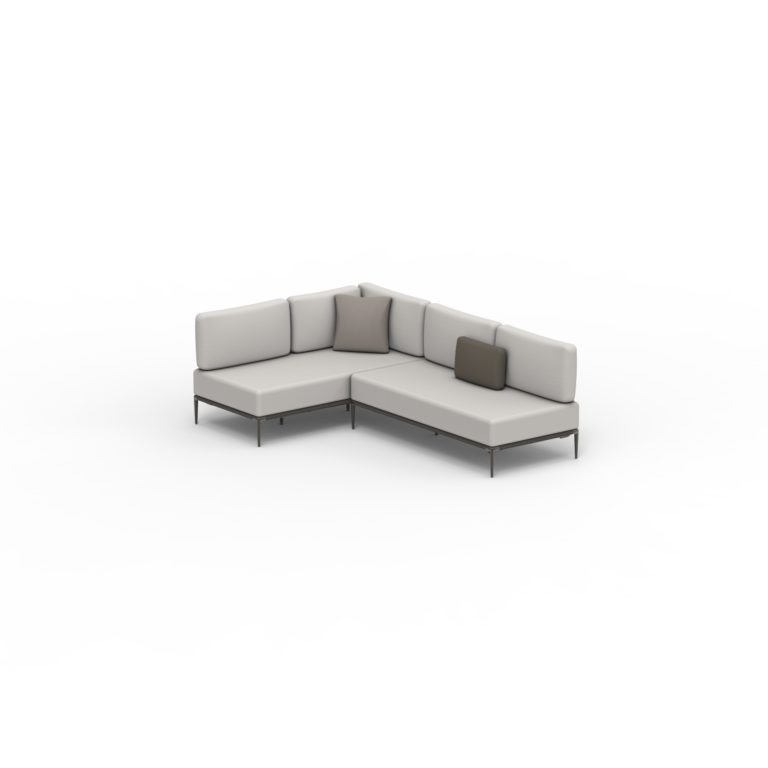 The light and airy frames, of this playful concept are available in white and bronze. Cushions come in a wide range of colours and textures, and all have a QuickDry filling.