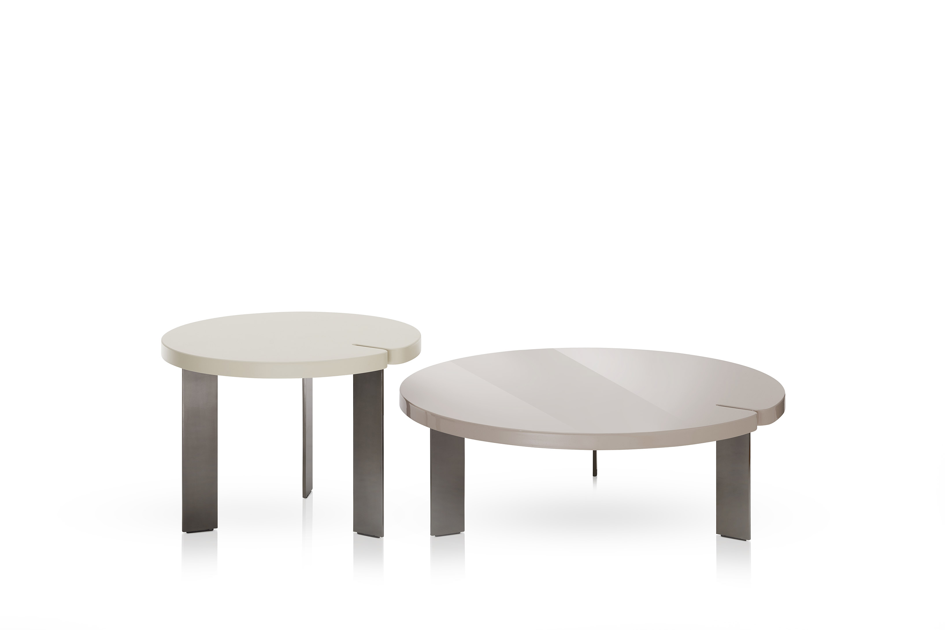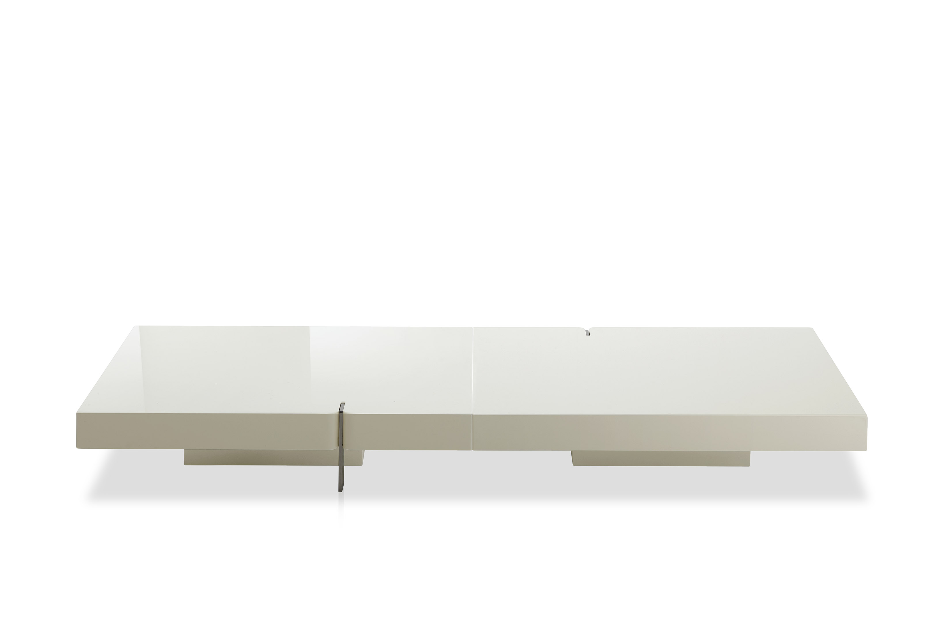 Produced in glossy or matt lacquered mdf, the elements are available in ivory and sand.