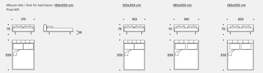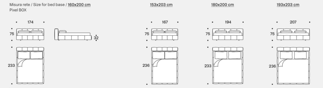 The pixel bed is soft in the entirety of its design. It offers a generous and comforting single volume thanks to the ample padding of the upholstered structure and rounded corners. The bed frame and the headboard are characterised by the quilted seams that recall Saba’s iconic Pixel sofa.