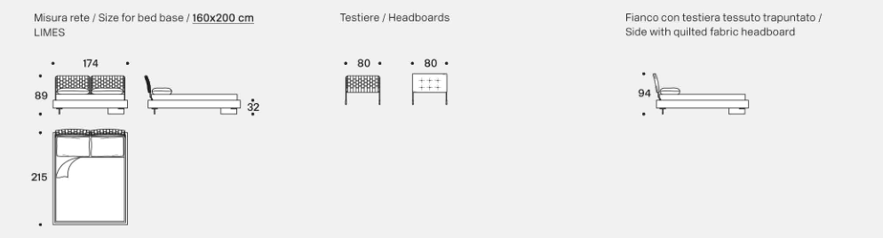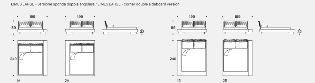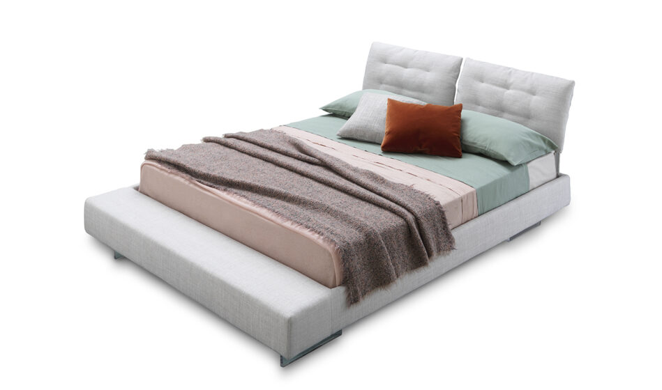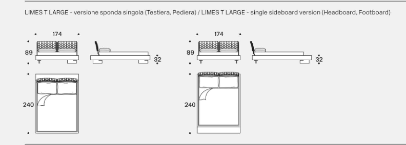 Limes T Large follows the same stylistic line of the Limes collection and is characterized by a functional integrated padded shelf, which depending on the panels positioning, can add an extra area to the headboard or footboard.