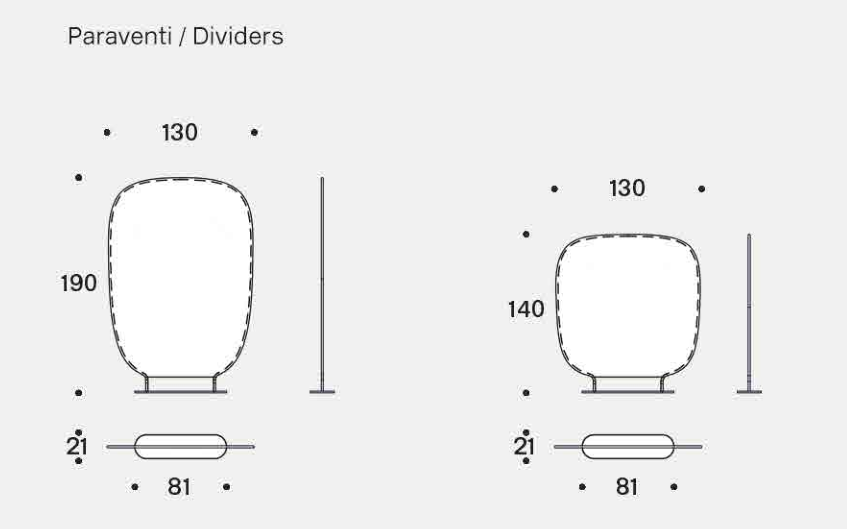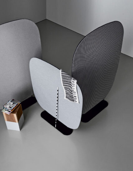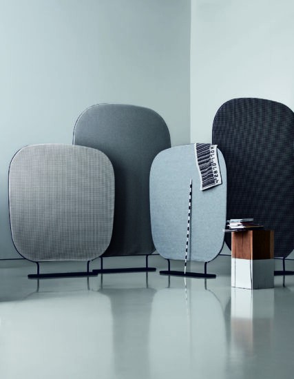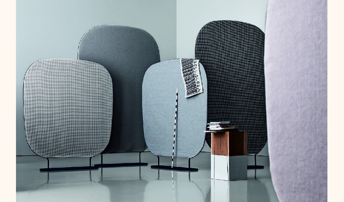 spaces: decorating, separating, reserving private and intimate corners. The two sizes and the different textiles for upholstery allow for a high degree of customization in terms of space and product.