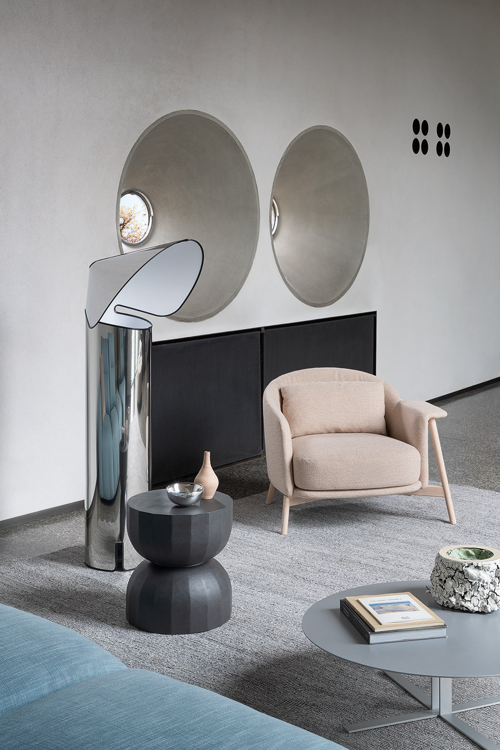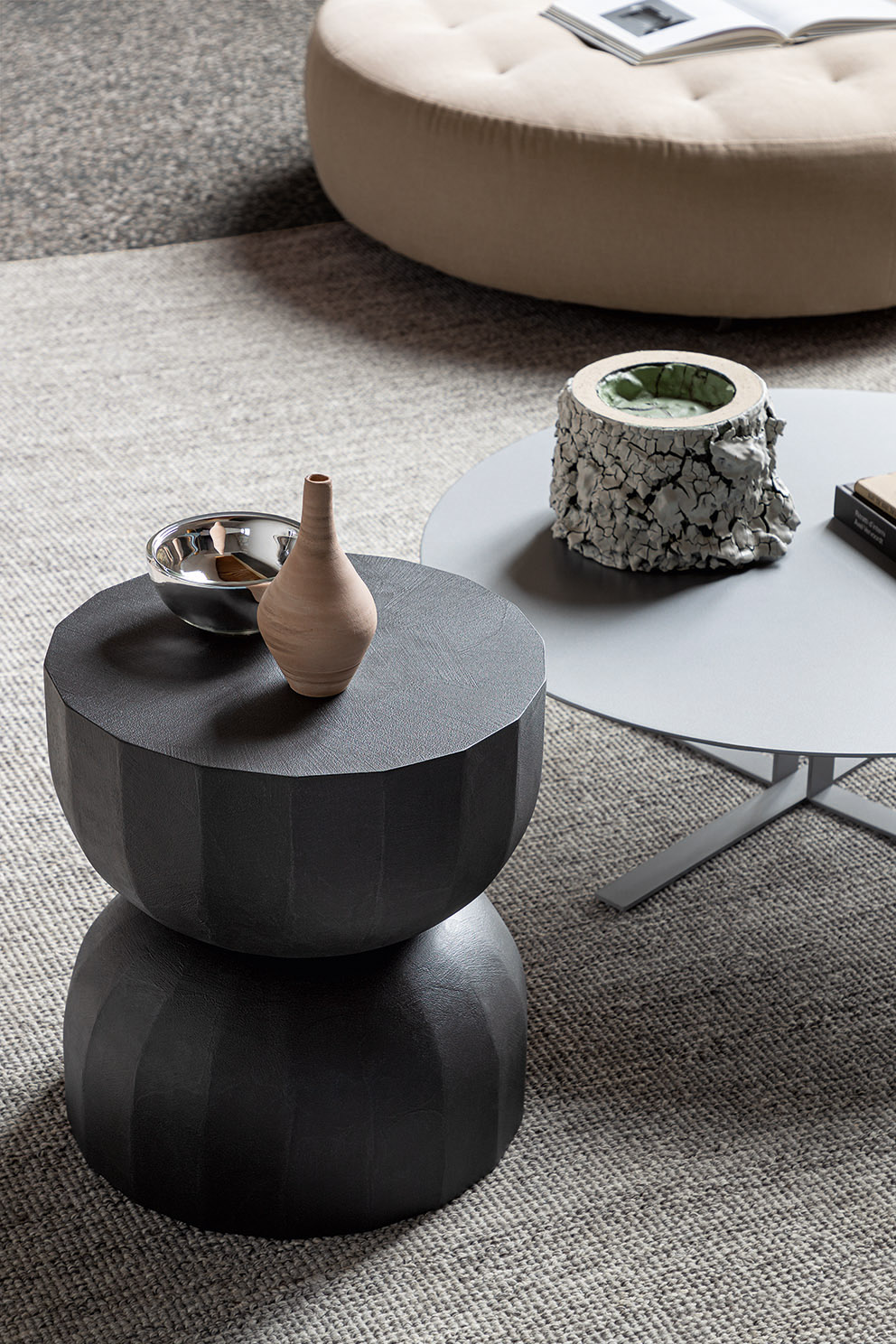 The Teo low table, stems from the idea of evoking a constructive and symbolic archetype such as the dome. The surface has slight facets, recalling the segments that usually form the domes in architecture.