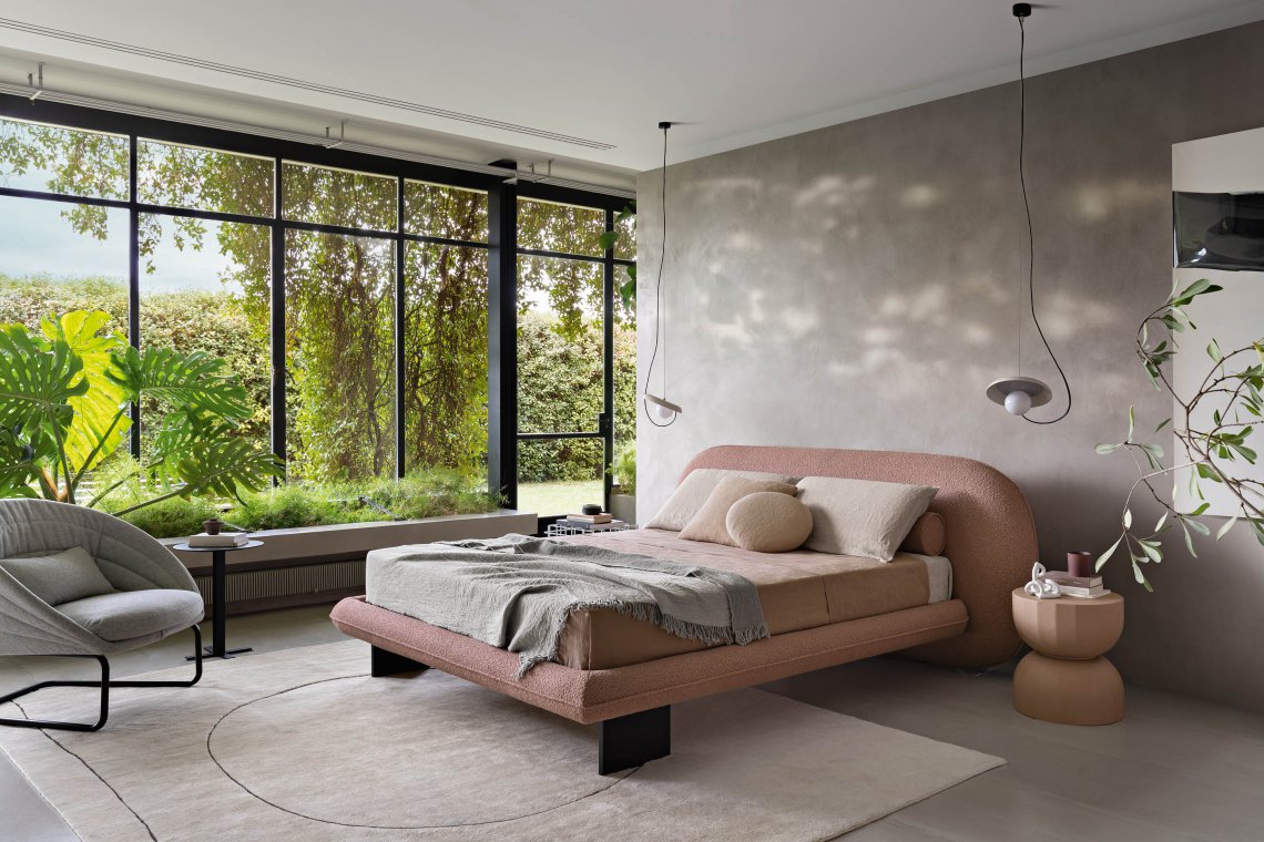 We love the new bed designed by Alain Gilles precisely for its apparent imperfection that combines, with a harmonious style, the sculptural quality of the feet with the clear-cut contrast created by the soft and textured headboard. Fully removable covers.