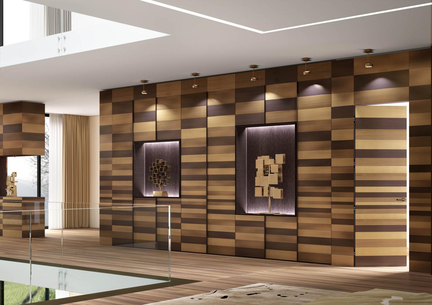 Wardrobes System in wood and metal with Stars decoration available in modules of different sizes, with Stars metal bands decoration available in all the metals of the collection and with horizontal and vertical decor.