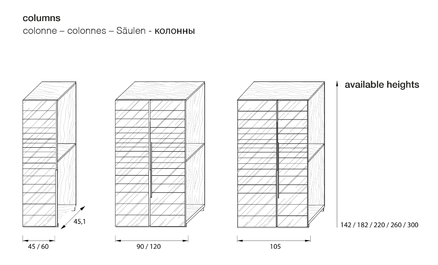 The Stars system has a design conceived to satisfy the most demanding customers, offering a unique luxury product made with noble metals such as brass or copper, and enhanced by the various accessory options and the integrated doors and wall panels, to create infinite compositions and allow complete customization.