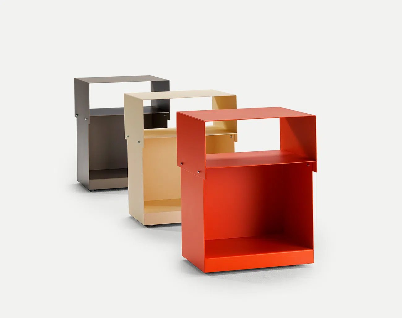 Apart from the castors, metal is the only raw material used in its construction. Laser cutting and folding make reduce waste to the minimum. Its textured finish adds character.