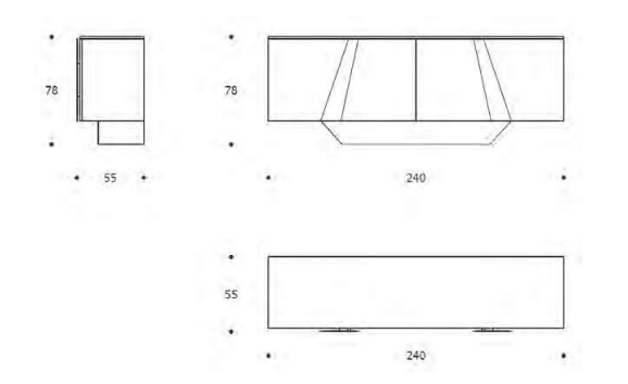 Dimensioni: larghezza 240 cm, altezza 78 cm, profondità 55 cm.