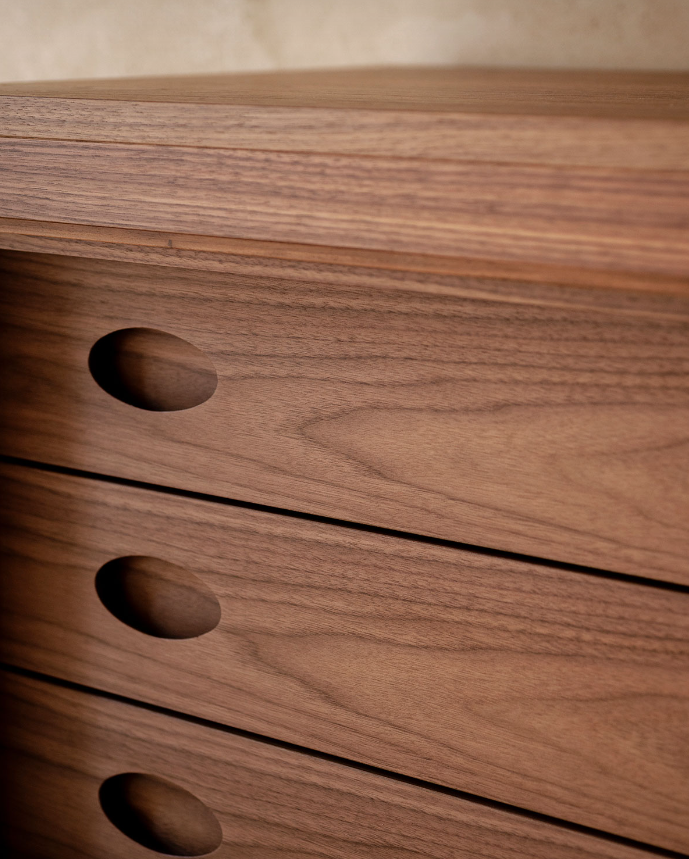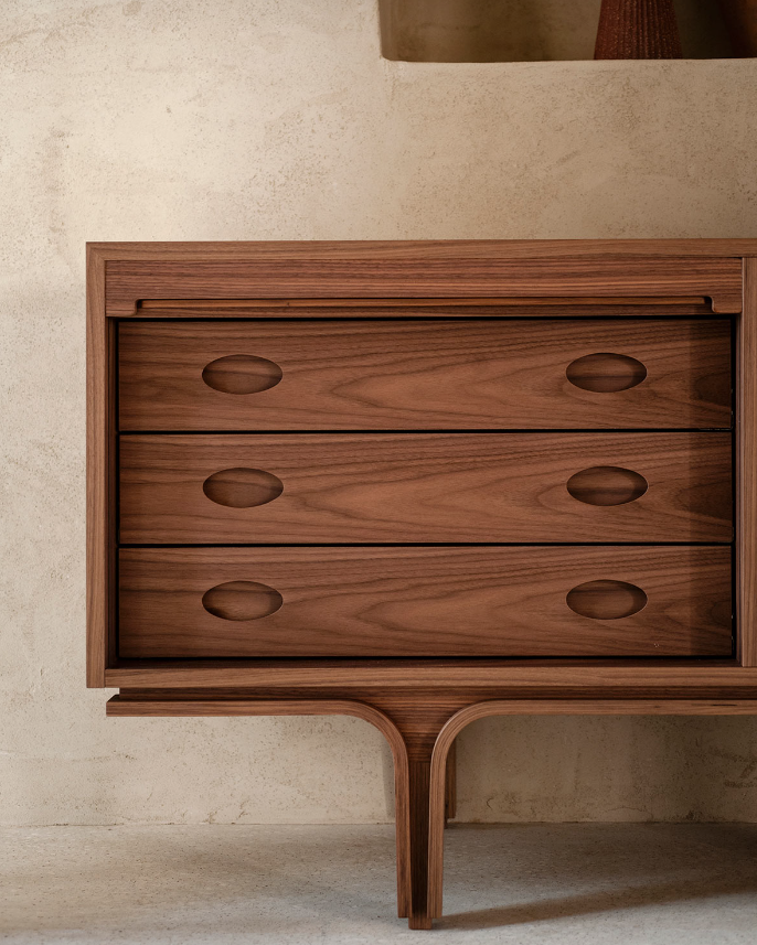 Still considered today one of the most characteristic and complete collections ever designed by Frattini, Serie 500 was born from careful observation of the need for a new way of living, and new functions filtered by the designer’s aesthetic sensitivity and his historical memory. Serie 500 writes another page in the collaboration with the Gianfranco Frattini Archive and a new chapter in the history of Tacchini: storage cabinets. Traditional elements are reinterpreted in new functions. Unexpected compartments open the doors of memory and recall the warmth of home.