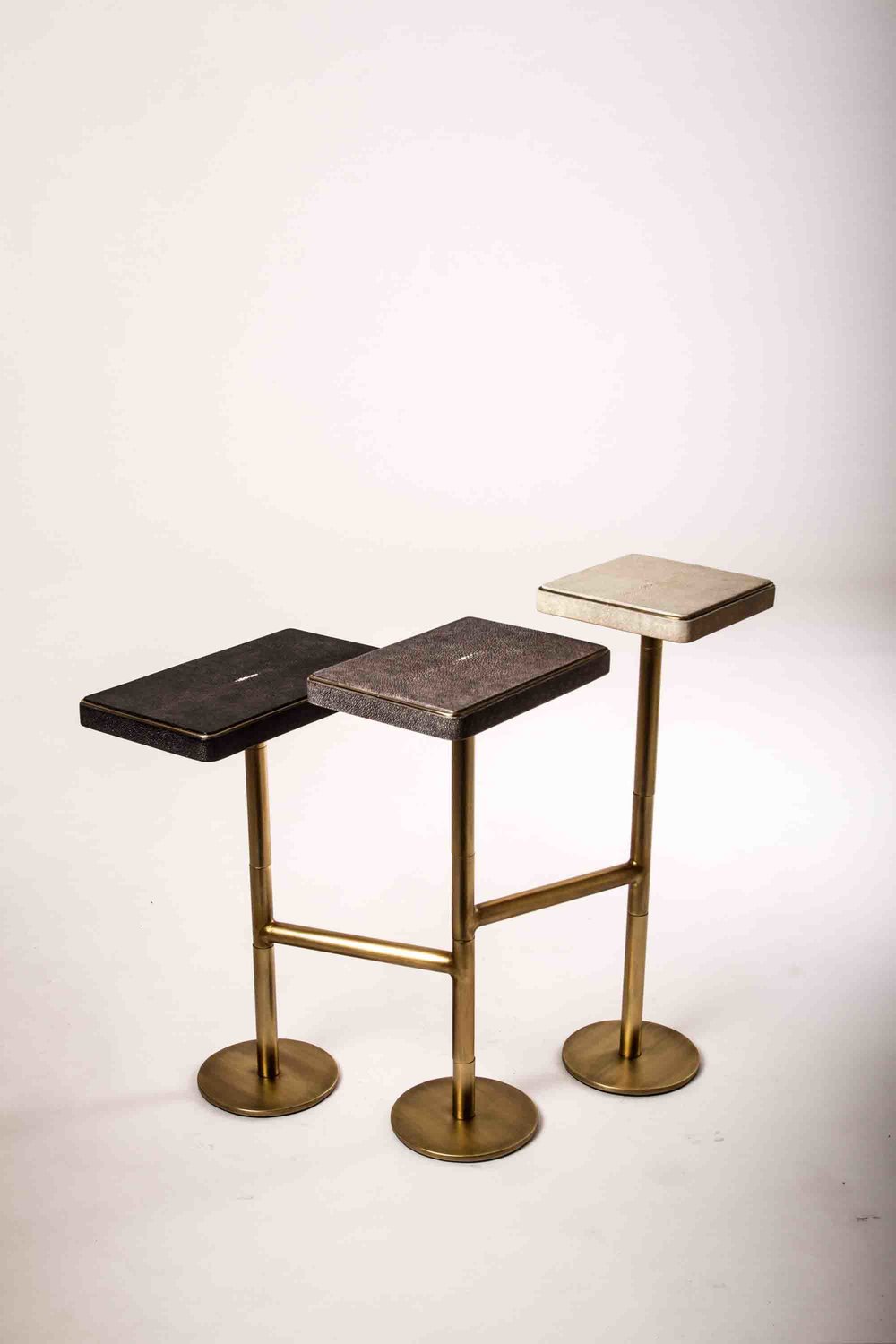 The 3-Top Rotating Side Table is completely mobile, allowing one to adjust the piece to their preference from elongated to clustered.