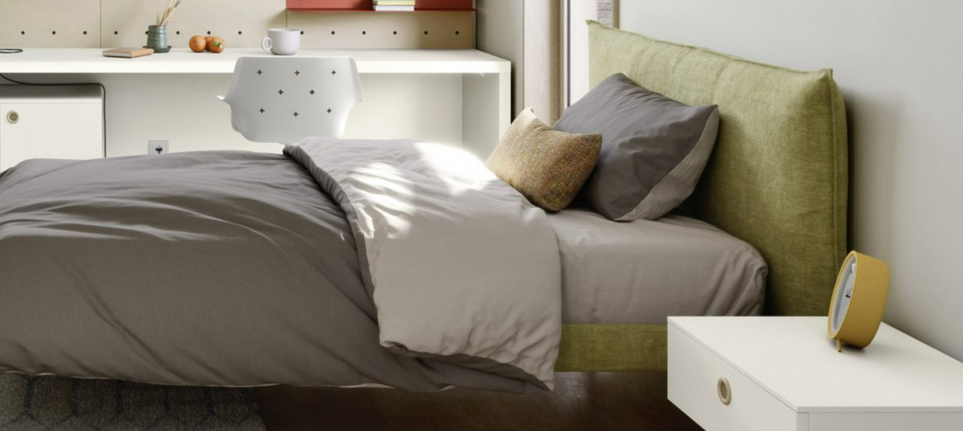 Con i suoi fianchi sagomati più larghi alla base, il ponte Tippy accoglie un letto, uno scrittoio o entrambi. E grazie al meccanismo, lo scrittoio lascia spazio al secondo letto senza dover spostare nulla.