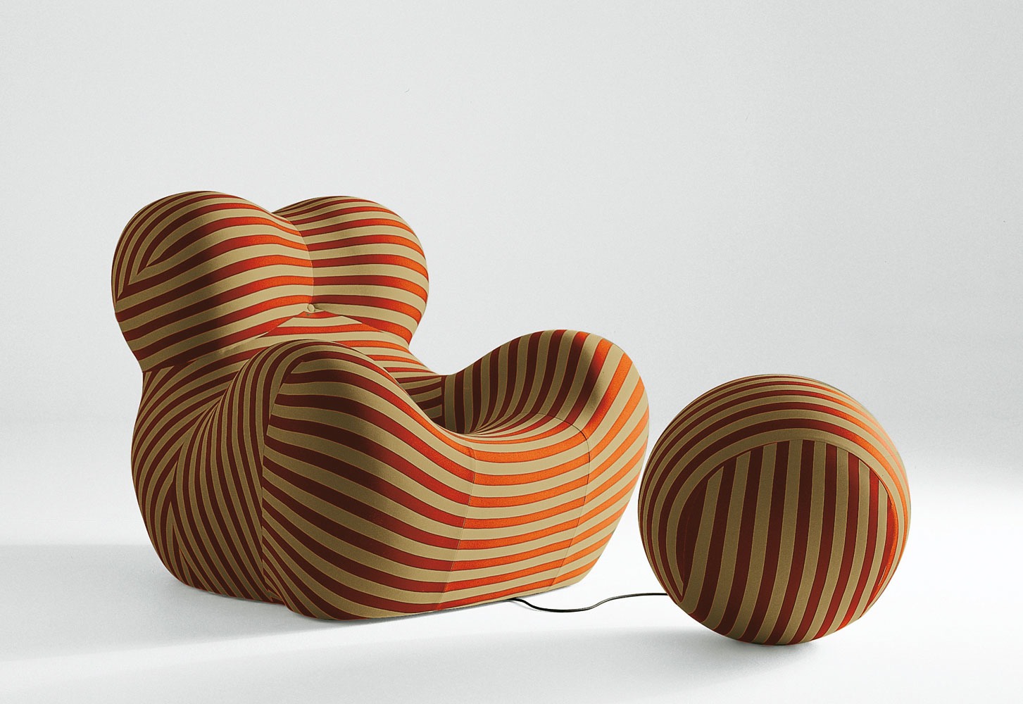 UP系列設計于1969年,它從一開始就是最為突出的設計表達,采用彈性面料作為飾面,造型極具表現力。組成該系列的七件產品包括扶手椅和厚圓椅墊UP5_6,這是現代性的標志,隱喻擁有舒適子宮(comfortable womb)卻依然受到禁錮的女性。這個無與倫比的設計標志目前有一個初級版本,除了體積小于原版之外,其他都是完全相同的。這是為3歲以上兒童設計的。