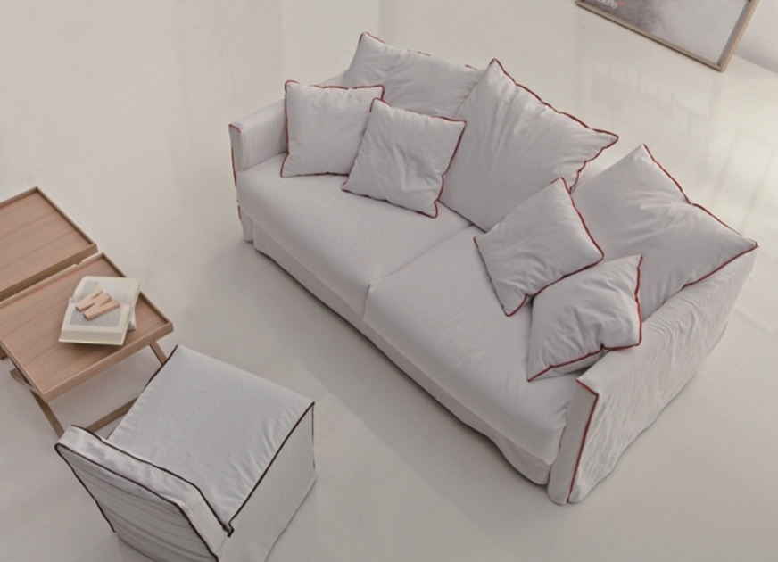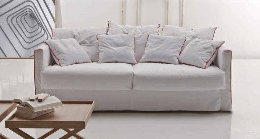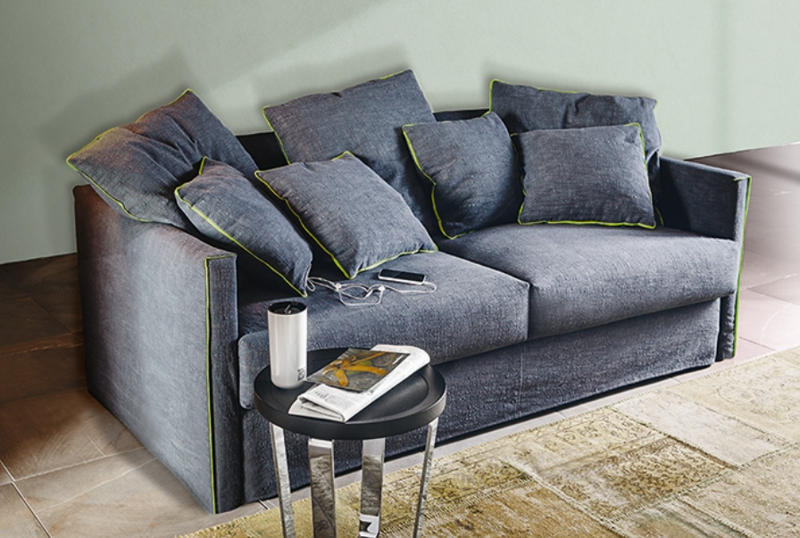 Sofa bed with extra cushions and contrasting piping