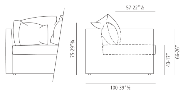 The 3600 Tangram sofa bed can be covered with an endless range of fabrics in the trendiest colours. Covers are available in the most requested materials: leather, cotton, linen, all of which are top quality handcrafted, sartorial products. The padding and cushions are filled with polyurethane foam wrapped by thermally bonded fibre. Backrest cushions are filled with sterilized and washed feather mixed with silicone polyester fibre.