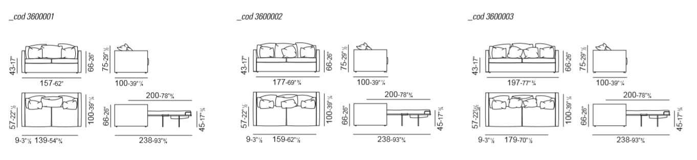 Vibieffe 3600 Tangram is a two-seat sofa bed available in different sizes and with completely removable covers in cotton, linen, leather or with custom covers.