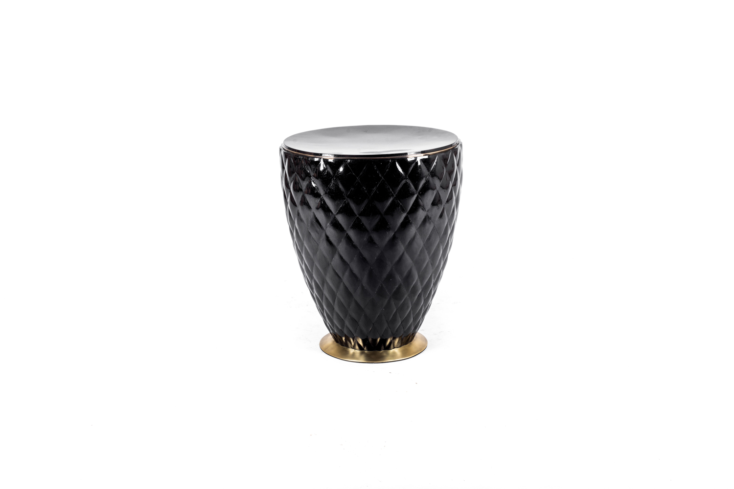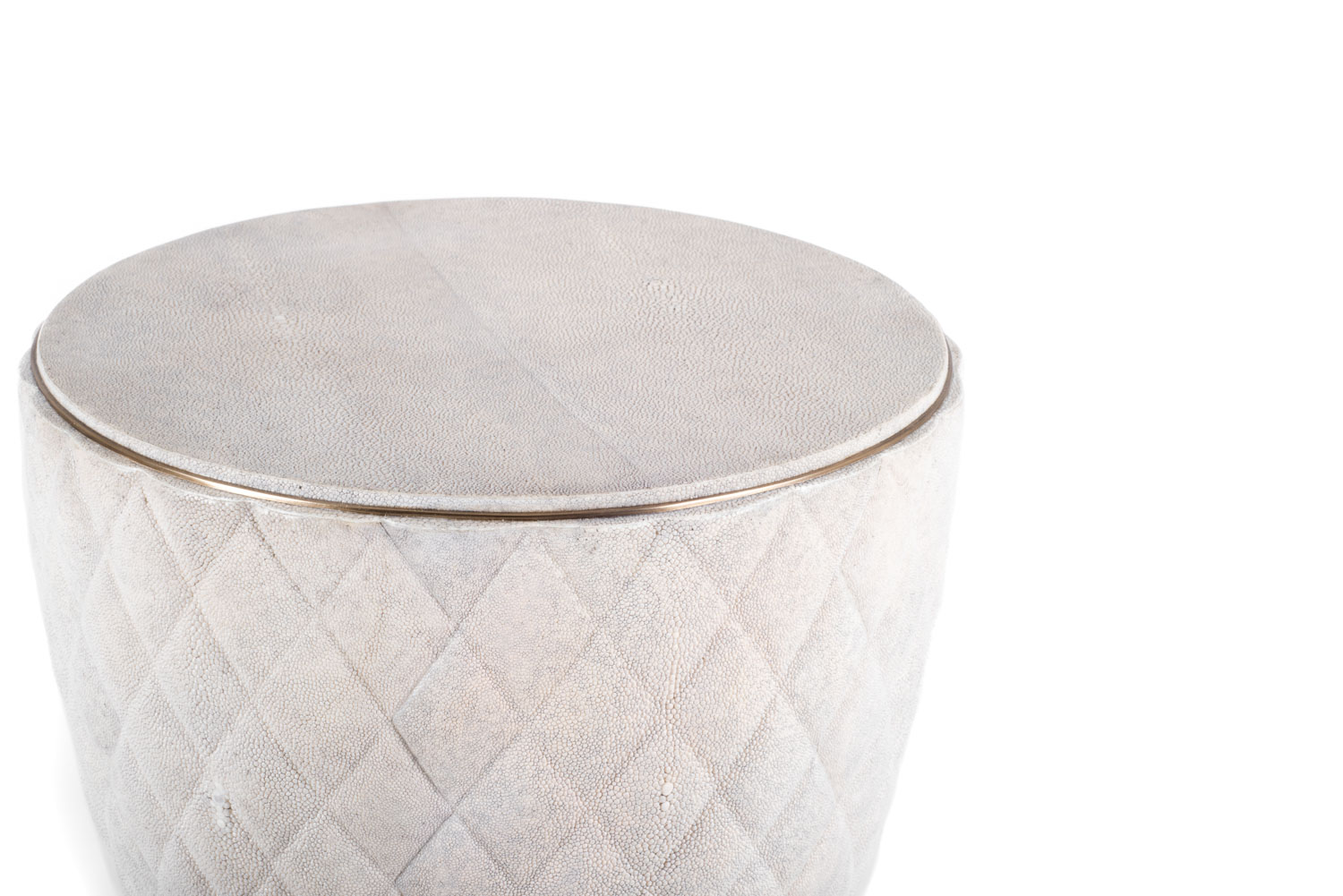 The Coco Stool is an elegant piece with it’s beautiful quilted detailing and bronze-patina brass border. A great stool for a dining table or living room area; available in cream shagreen or black pen shell.