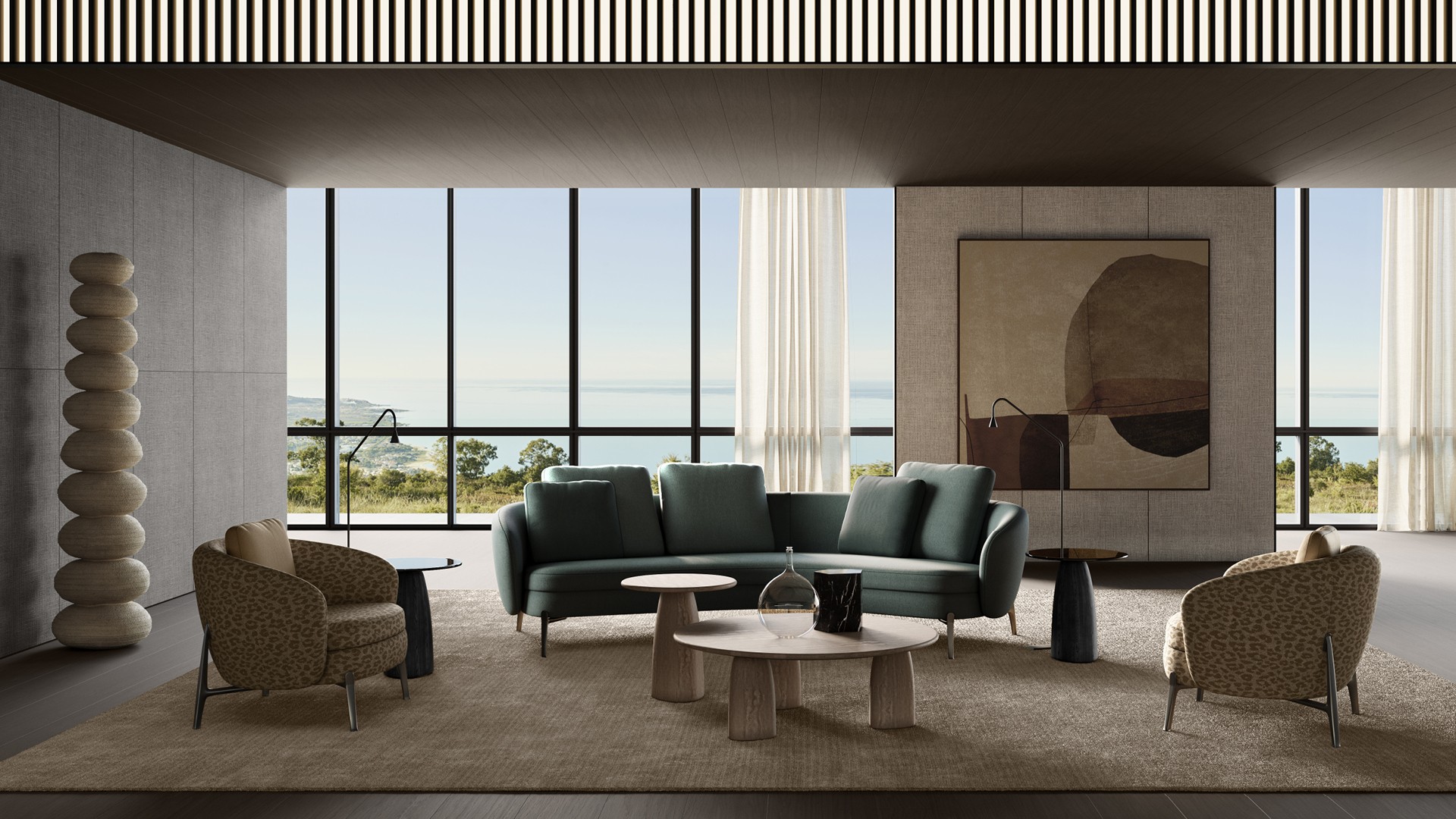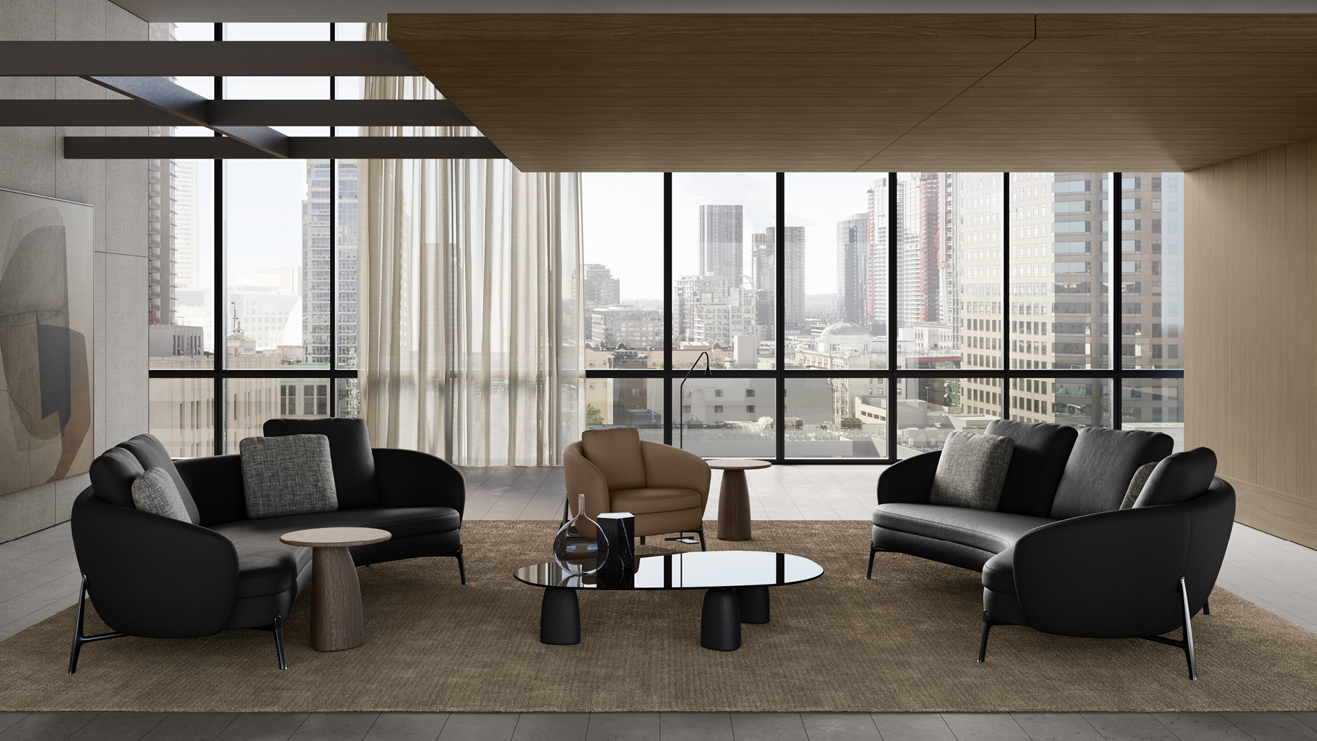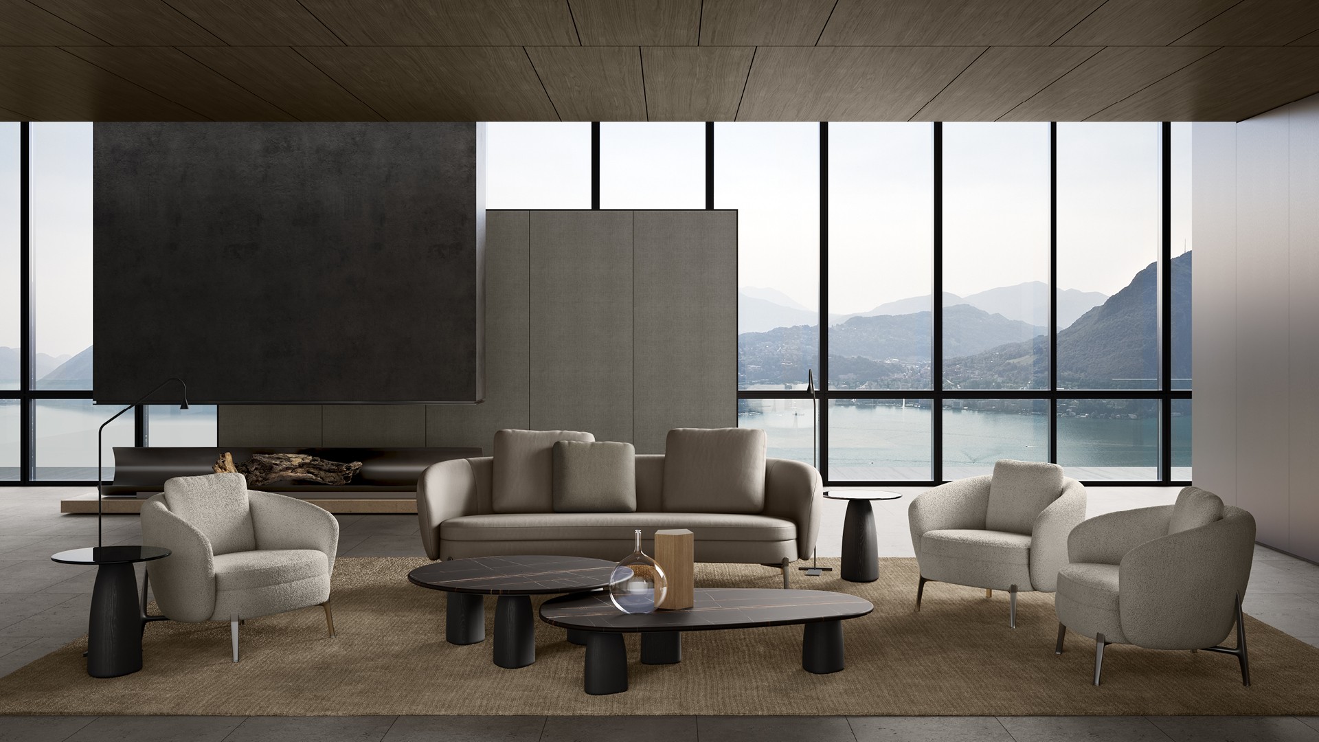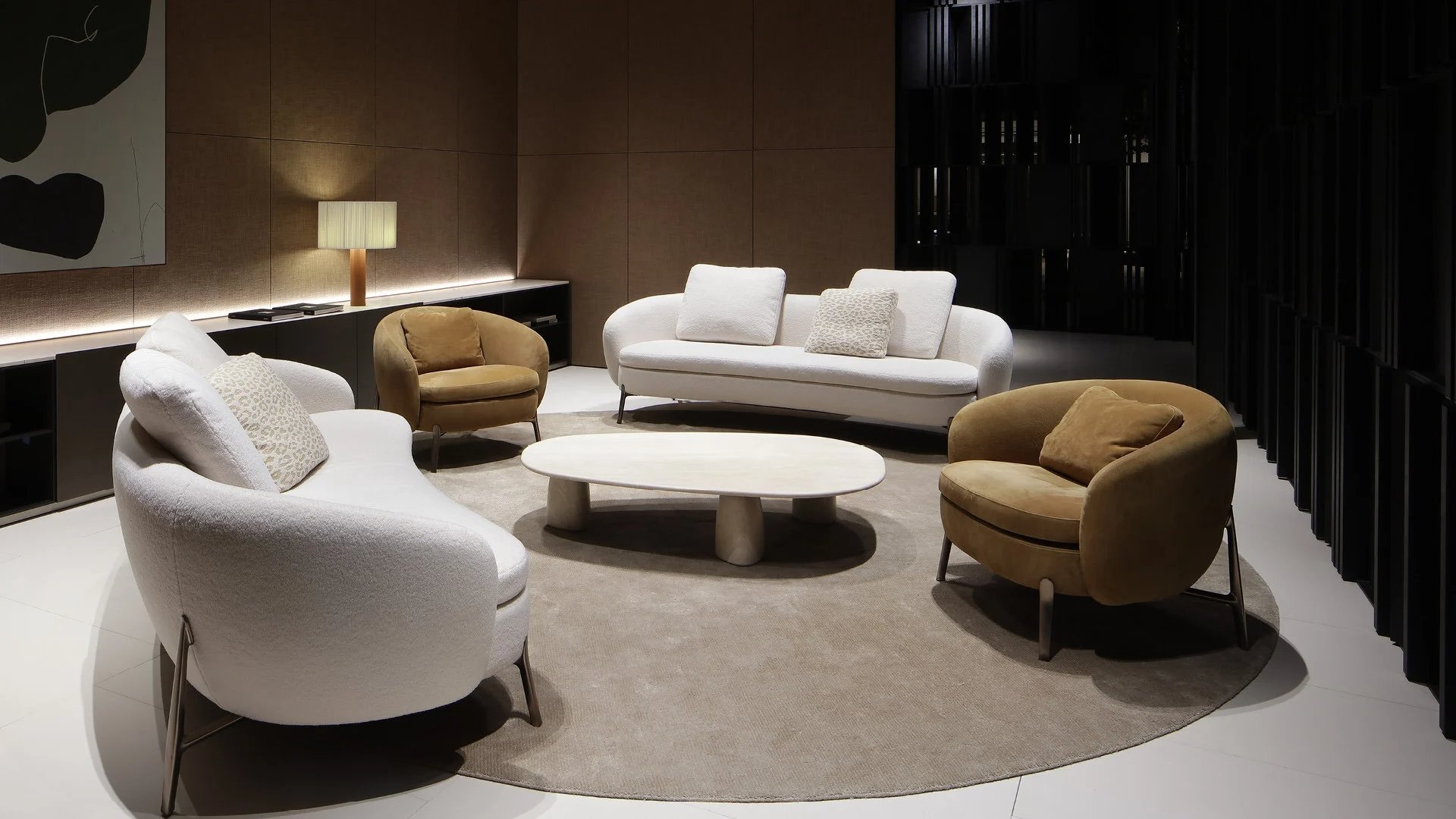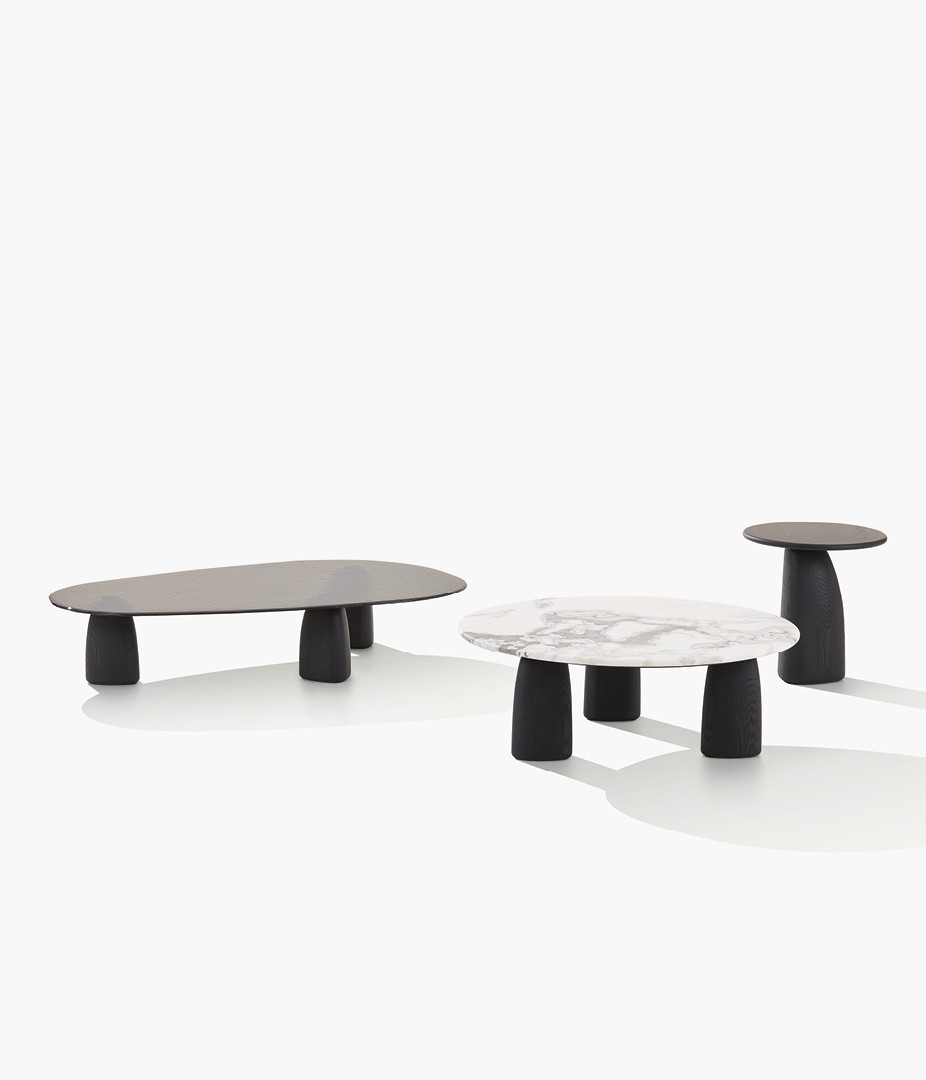Strata最初作為戶外小茶桌而誕生,現(xiàn)重新詮釋為室內(nèi)家具。其桌腿采用黑色榆木,臺面則采用大理石和玻璃材料,另外還有一款完全由石灰?guī)r制成,呈現(xiàn)出雕塑般的美感。Strata有各種不同的尺寸和高度可選,臺面有圓形或自然形狀,展現(xiàn)了其獨特的魅力,可與該系列的所有沙發(fā)搭配使用。