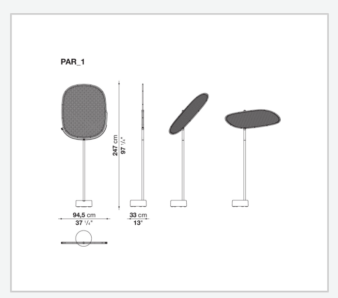 Tesa O’ is a shading element conceived as a style statement and a versatile solution for outdoor spaces, an object that combines aesthetics and functionality in an exemplary manner. The lenticular shape is embellished with an organic straw effect made of high-quality plastic material. The size of the sunshade and the aluminium pole with a 360-degree swivel joint, which allows it to be oriented as one pleases, offer protection from the sun's rays any time of day. The concrete base guarantees stability and safety, even in windy conditions.