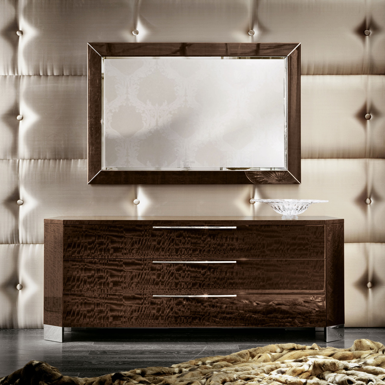 Dresser in european curly eucalyptus veneer in high gloss polyester.