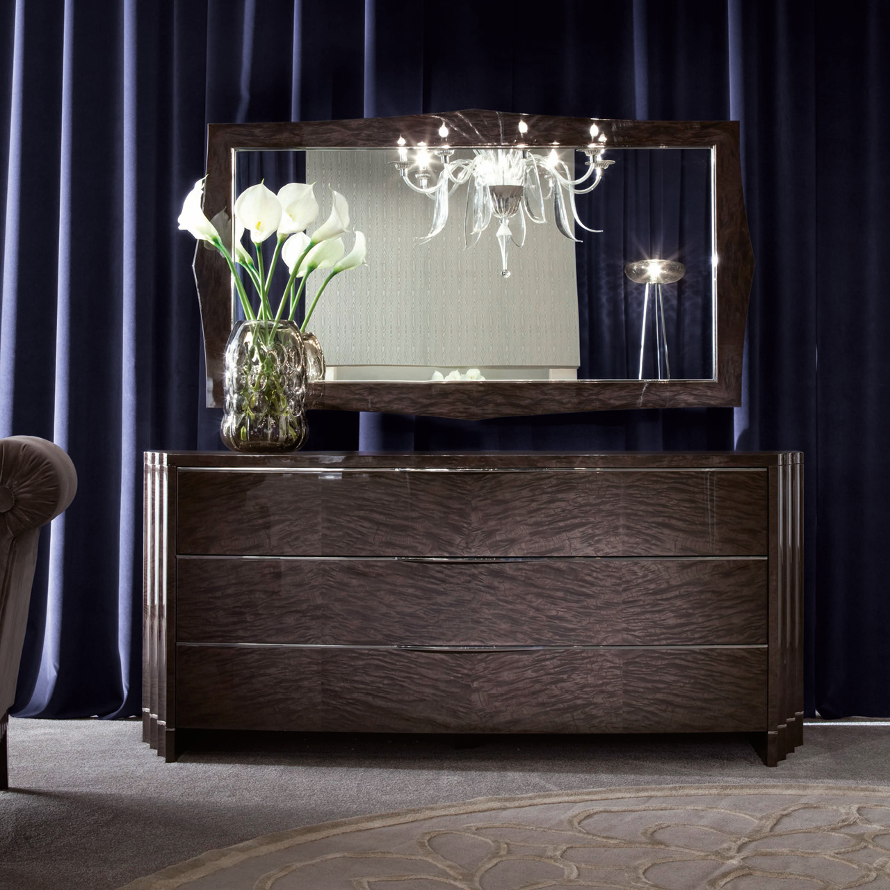 Dresser available in high gloss polyester moka japanese tamo burl veneer.