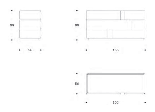 Dimensioni: larghezza 155 cm, altezza 56 cm, profondità 56 cm.