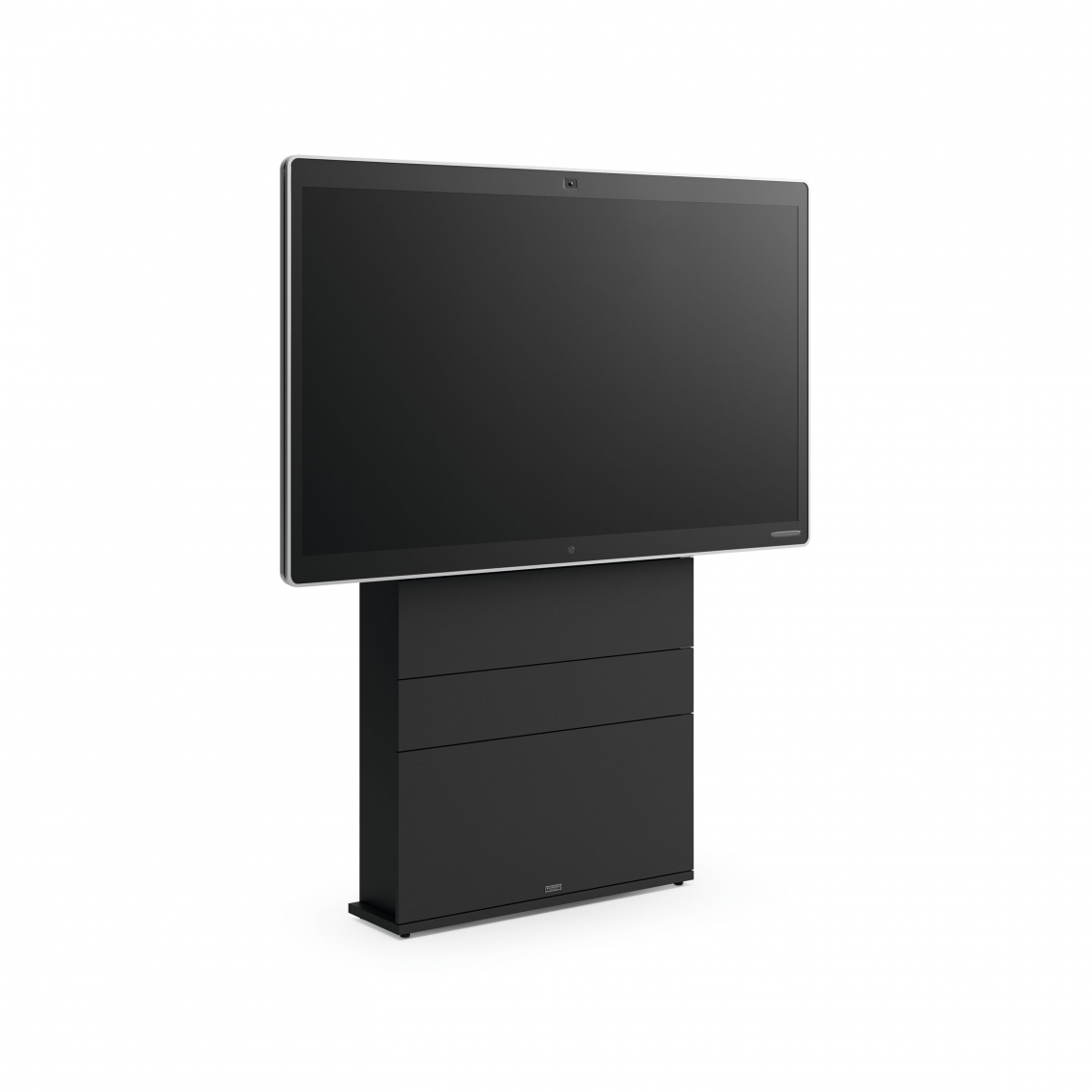 The static Media-X-Stele is compatible with 55, 70 and 85-inch screens from different manufacturers. Or optionally with two 55-inch screens. As digital signage, for presentations, or for virtual conferencing. In management office, open space, conference room, lounge, shop, or lobby.