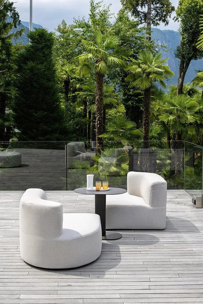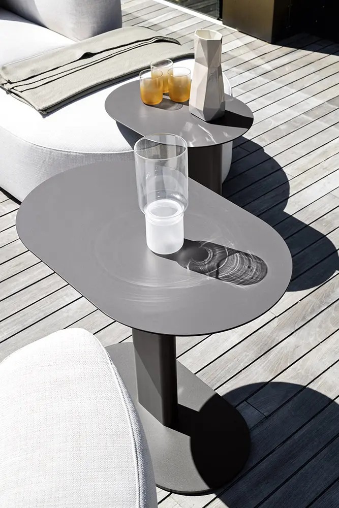 The Plinto coffee table offers a convenient support for placing small items that you may need when spending time outdoors. The stem with the elliptical section of the base that identifies the entire collection also characterizes this version designed for the living area. The top and base are also elliptical in shape, an aesthetic choice that gives harmony to the design of this furniture.
