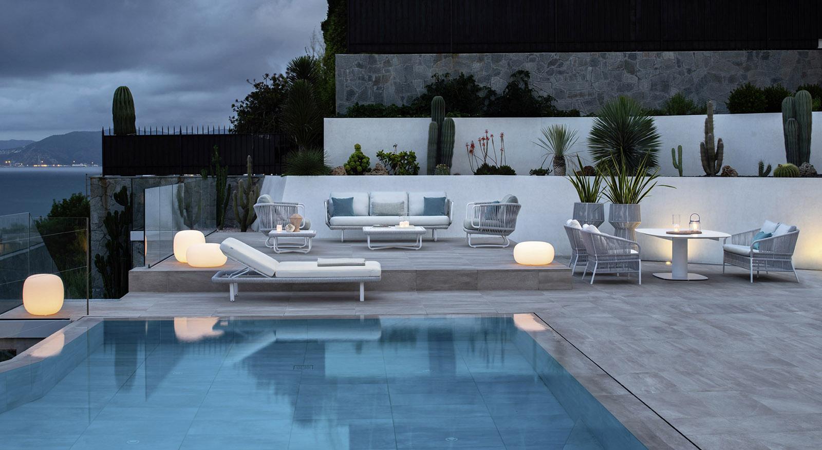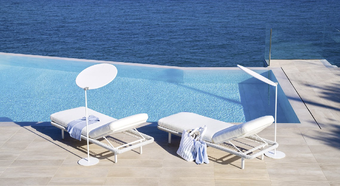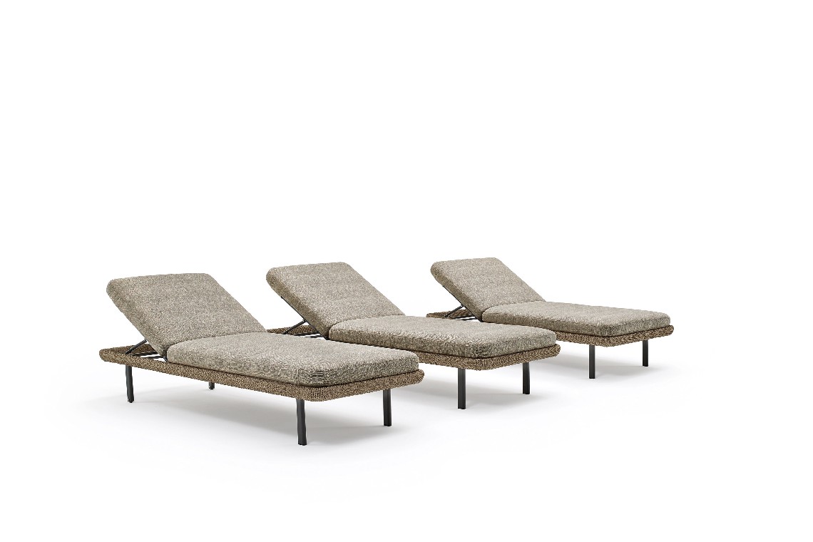 Softness and comfort are the keywords for the Babylon sunbed. The padding of the backrest and seat, suitable for outdoor use even in saline fog areas, has rounded profiles that follow the perimeter of the structure, around which a synthetic fiber rope is woven. With its discreet colors inspired by nature, Babylon finds the right harmony with the surrounding environment, in the garden as on the veranda, on the terrace as by the pool.