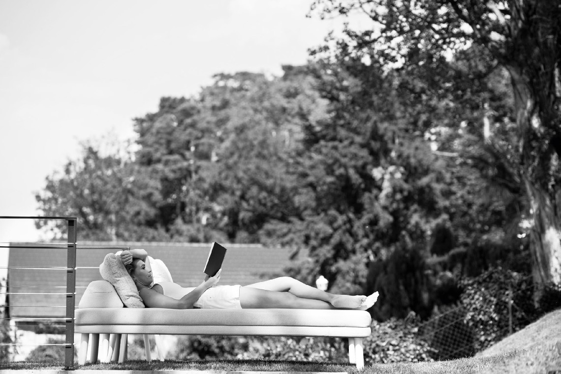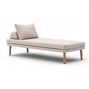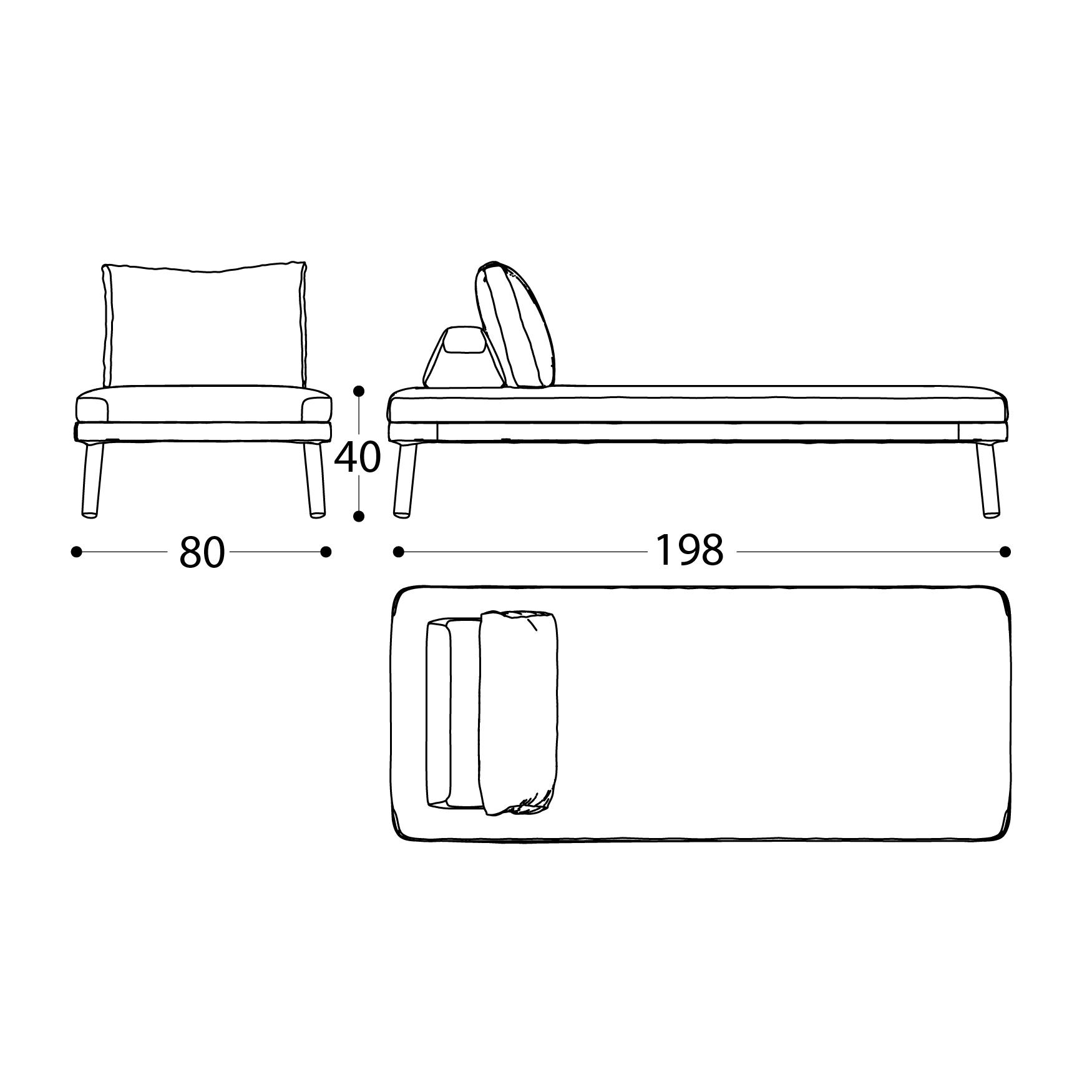 The design of the dormeuse Emma is studied to gently welcome your body during relax moments in the outdoors. The soft padding that covers the entire surface of the bed is combined with a pair of cushions of different shapes to support the head and shoulders: the first, more structured and characterized by elegant seams, acts as a support, while the second, softer, allows you to abandon yourself gently.