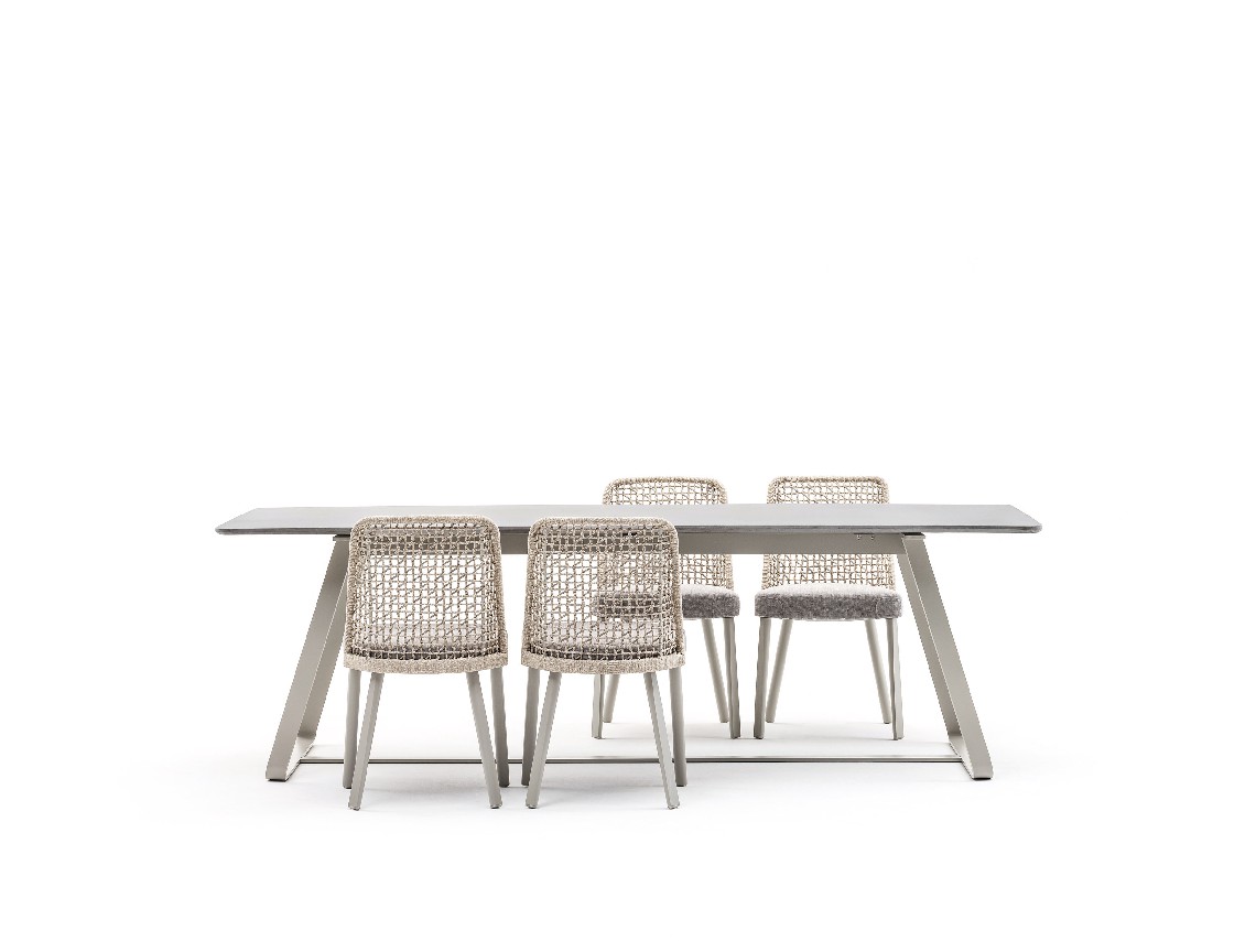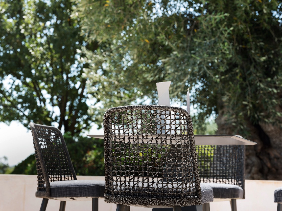 When an unmistakable design meets versatility, products like Emma are born, a handy and resistant outdoor chair, ideal for decorating large terraces and dining rooms in restaurants and hotels. The seat shell in plastic material is designed to allow water drainage. Different types of backrest can be mounted on it, with synthetic fiber weaving, in texture or in fabric, and with legs, in aluminum or iroko wood. Each finish tells a different nuance of Emma’s personality, making it enter into harmonious dialogue with any type of environment.