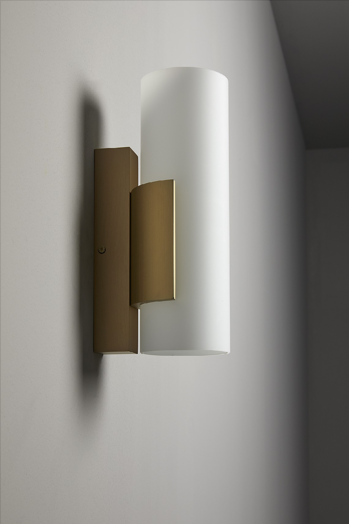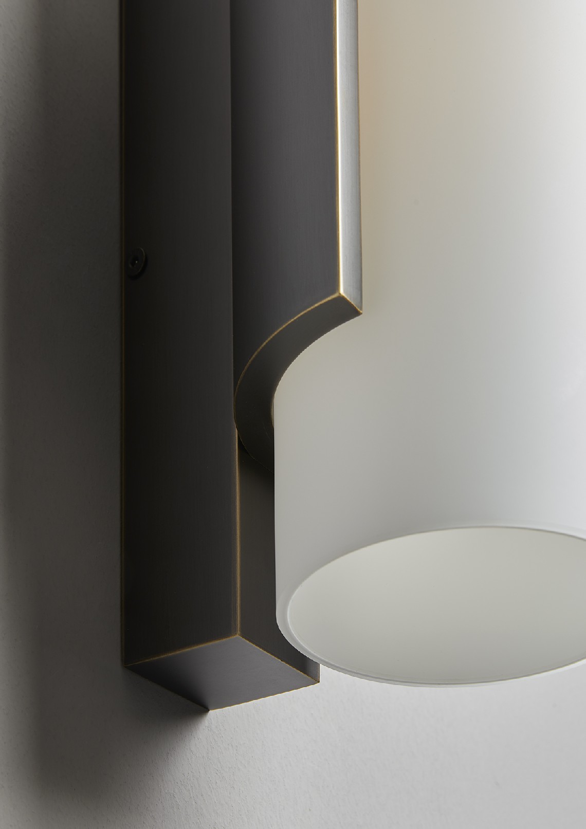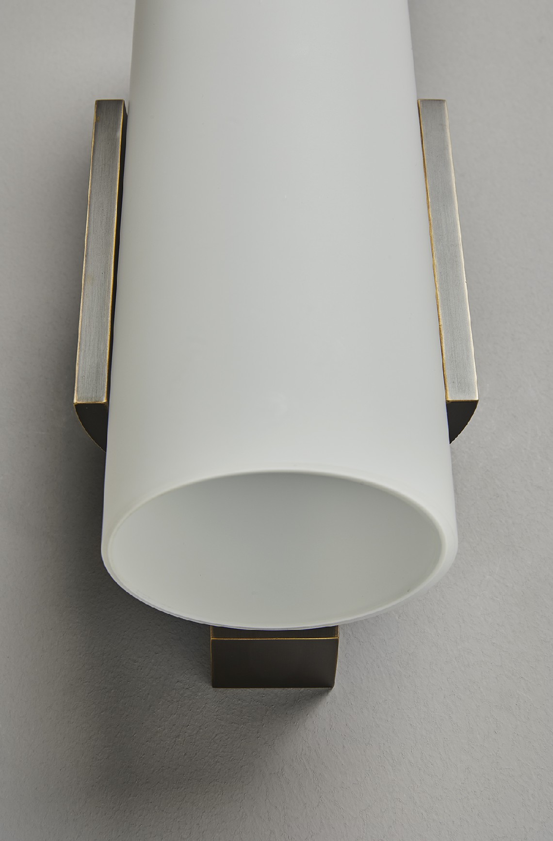Wall lamp with diffused light. Metal structure, light or dark burnesched brass finiush.
