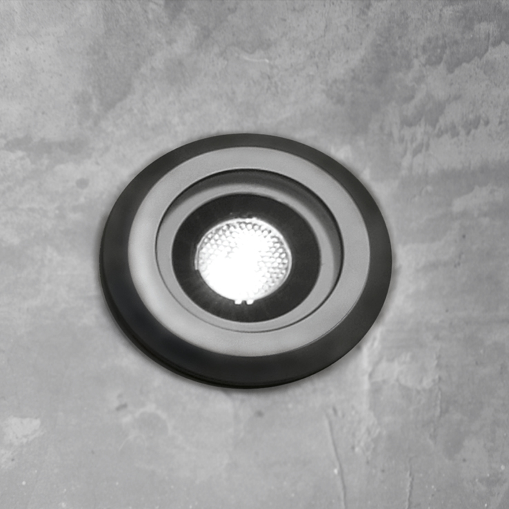 recessed light fitting for interior and exterior use, made of oxidised aluminium. versions: m4 spot short wet location rated, diameter ?60mm/2.4’’ h.48mm/1.9’’ up to 12.5W 1120lm with 22° 29° 47° interchangeable optics and 24°x45° elliptical optic, with round or square aluminium bezel, m4 side emitter short damp location rated, diameter ?60mm/2.4’’ h.66mm/2.6’’ up to 2,2W 152lm, with polymethyl methacrylate bezel. wired with 2700K, 3000K or 4000K led source. 120V 50-60Hz power supply not included, to be installed remotely. accessories: plasterboard ring, comfort, short and large housings. finish: black.