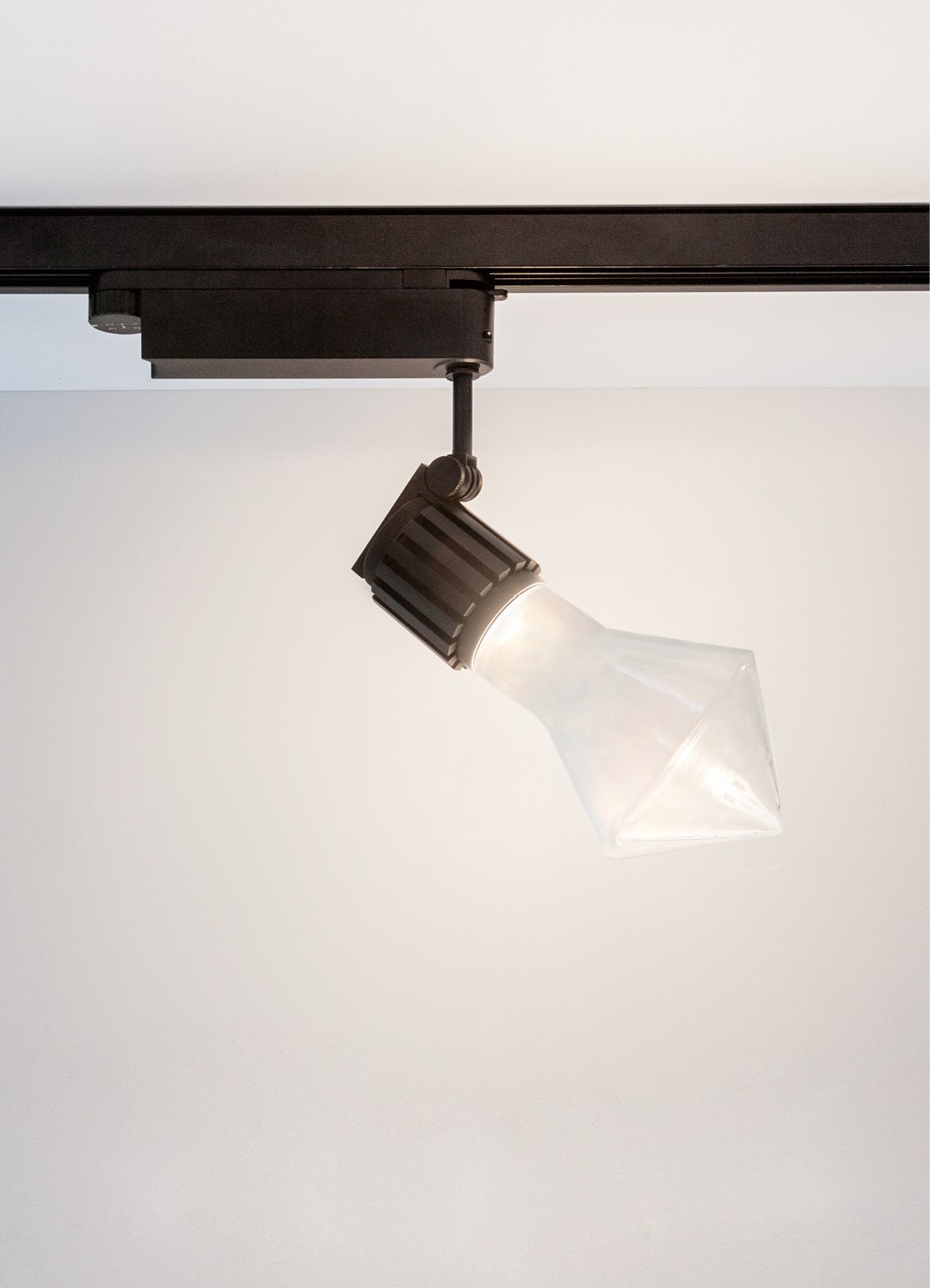 dry location rated track light fitting for interior use, made of oxidised aluminium. versions: n55 binario adjustable version, 52x198mm/2x7.8’’ with h.100mm/3.9’’ which can be paired with the following propulsori dinamici n55: 55/350e les19 up to 9.7W 350mA 1240lm, 55/350 les19 up to 9.7W 350mA 1240lm, 55/500 les19 up to 14W 500mA 1580lm, 55/500 les9 up to 13.6W 500mA 800lm, 65/500e les19 up to 14W 500mA 1580lm, 65/700 les19 up to 19.9W 700mA 2140lm, 65/700 les9 up to 19.5W 700mA 1110lm, 82/1050 les19 up to 30.5W 1050mA 3000lm. all propellers are Ra98 1 step macadam with 2700K, 3000K or 3000Vb K (designed for high fashion industry) led source. the specific n55 joint allows to change three types of light bulbs: classic, decorative and technical. any irregularities in the glass are a guarantee of an unique product, blown and entirely hand crafted by master glassmakers. track adapter available with 120V power supply with smart control which automatically provides the suitable current according to the type of propeller. finishes: argento hacca with white or black track adapter; nero55 with black track adapter; my bianco with white track adapter. classic and decorative bulbs with transparent, sanded and milk white glass. customize your light visit www.Viabizzuno.com