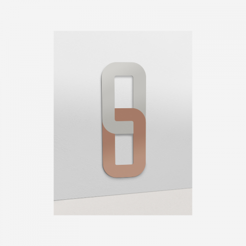 An original design characterized by the contrast of the two-tone silver and pink mirror.