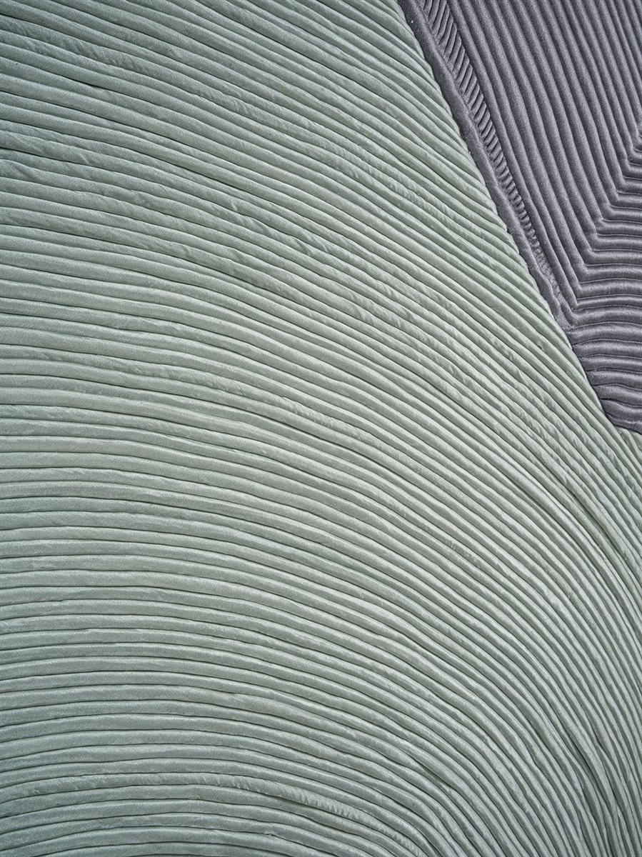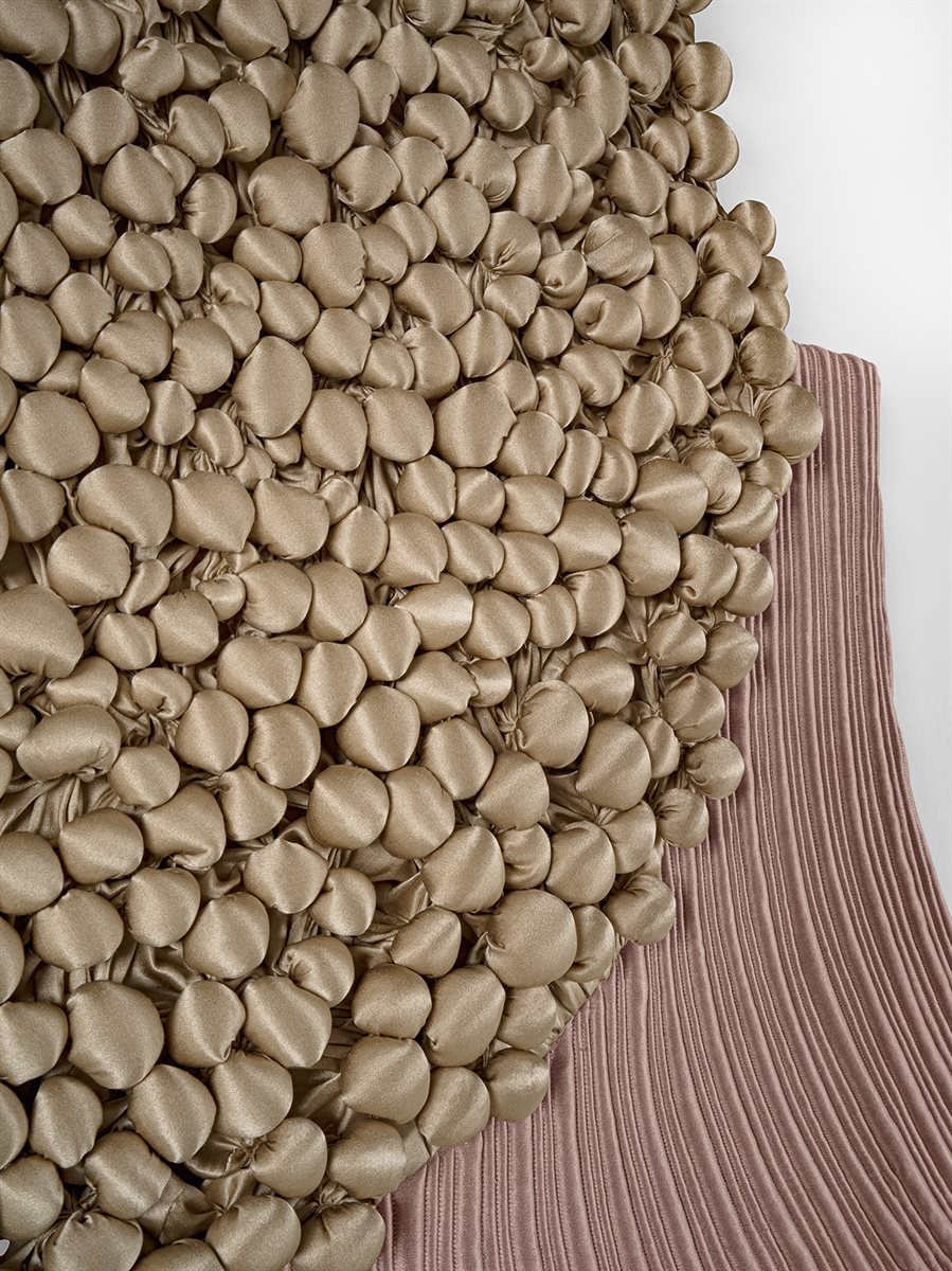 Wall hanging realizzato in seta pura, tinta con colori naturali, ricamata a mano da prestigiosi artigiani italiani. Per ogni pannello sono necessarie circa 300 ore di lavoro. Può essere posizionato orizzontalmente o verticalmente.
