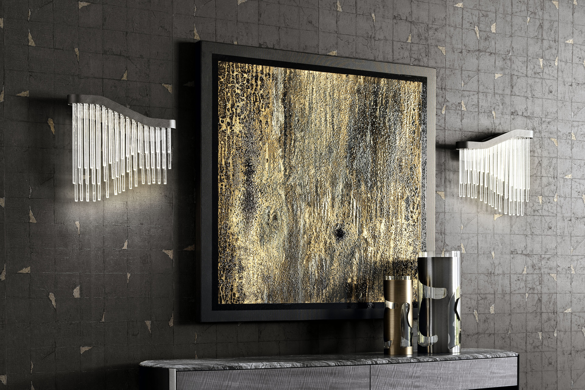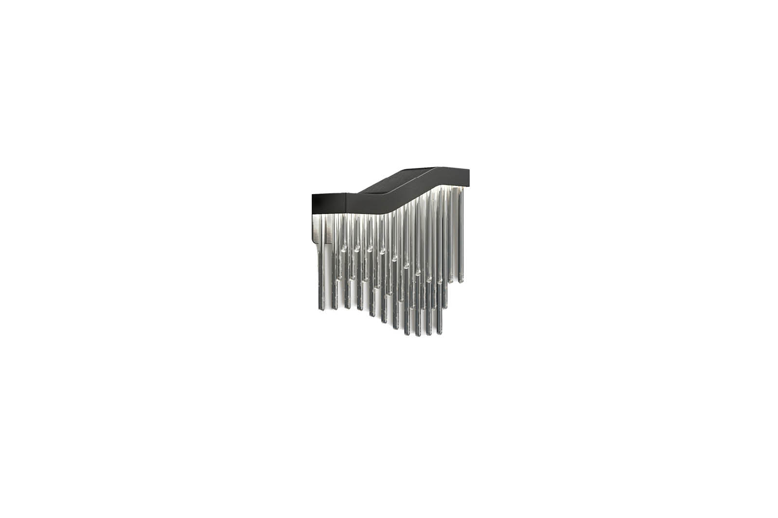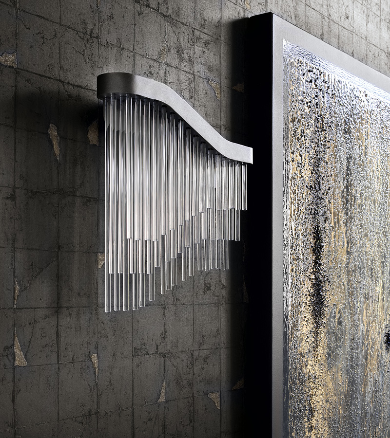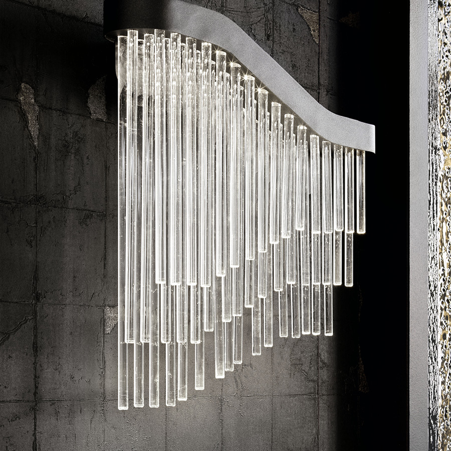 Wall light with satin black nickel stainless steel scructure with inserted Venetian "Murano" clear blown glasses.