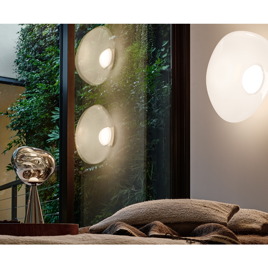 Obsessed with the idea of creating an imperfect, organic and naturalistic lighting object, Melt was created in collaboration with FRONT – a Swedish design collective. Melt is evocative of molten glass, the interior of a melting glacier, or images of deep space.