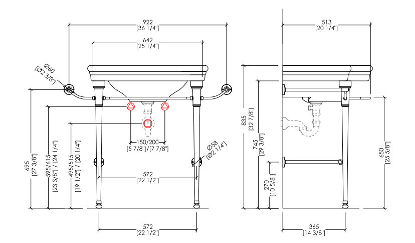 This classic-style console, with basin in fine English porcelain, is the perfect blend of love for tradition and practicality. Legs and tower rail are in turned brass, available in chrome, light gold or polished nickel finishes.