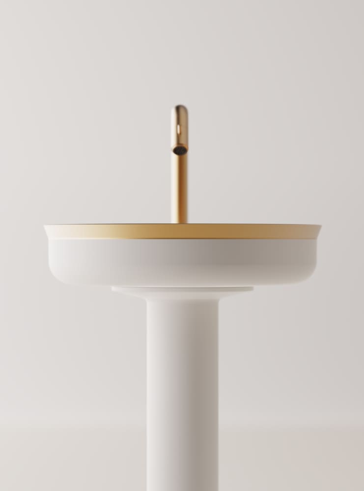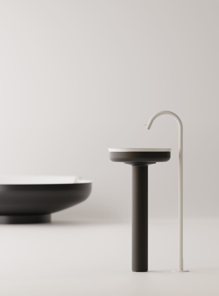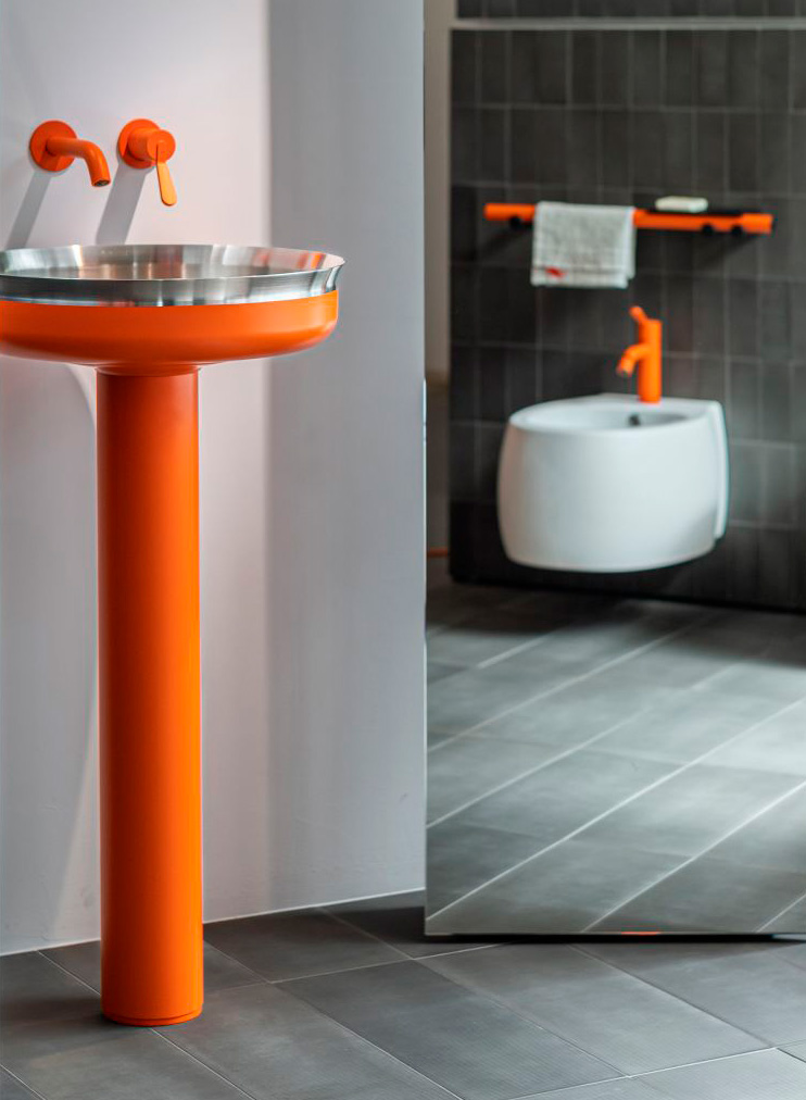 Undici Inox, in its freestanding version, is a gentle blend of archetypical simplicity and delicately elaborated details. The clarity of its geometries make the washbasin an extremely versatile design element. Undici Inox freestanding is available in a large number of finishes that can be specified separately for the painted support column and the basin that always features an exposed metal (natural brushed brass or stainless steel) interior with coordinated waste. The painted elements are also available with RAL on demand.