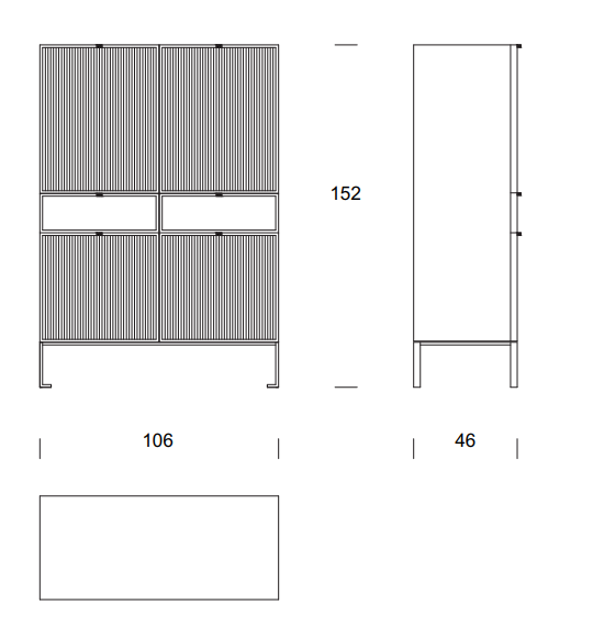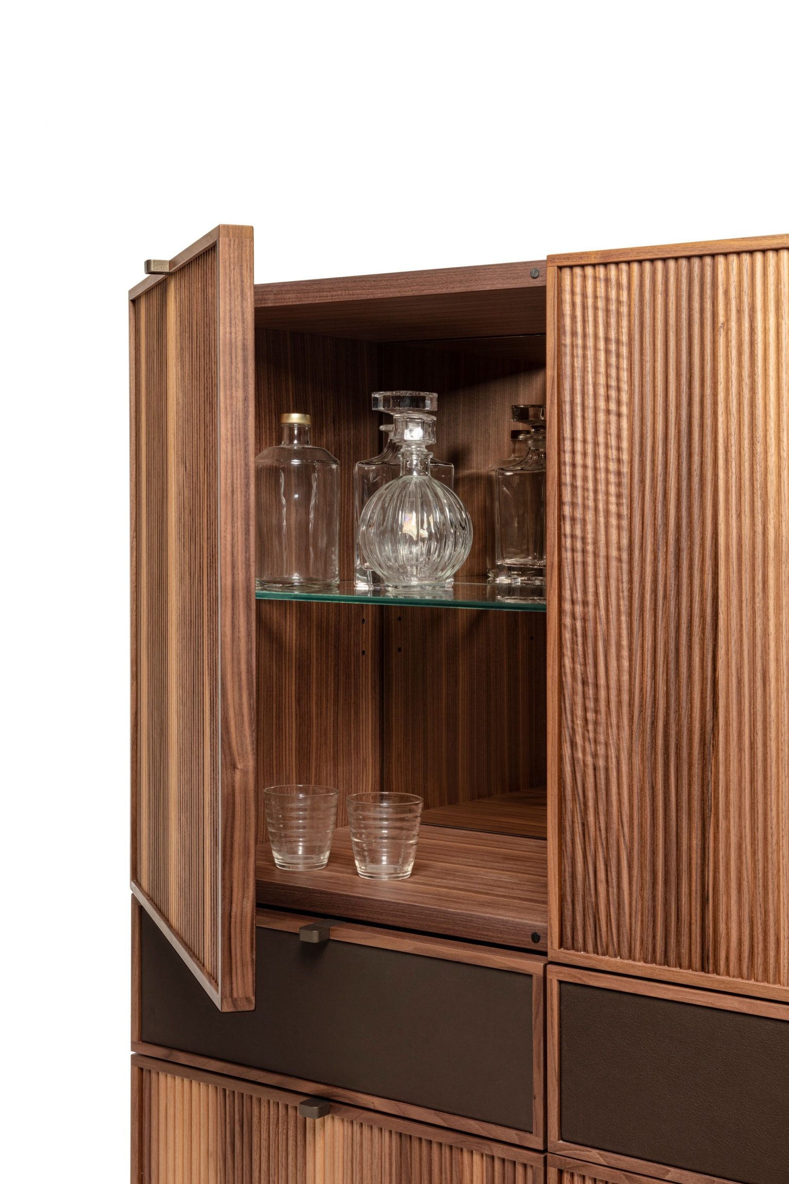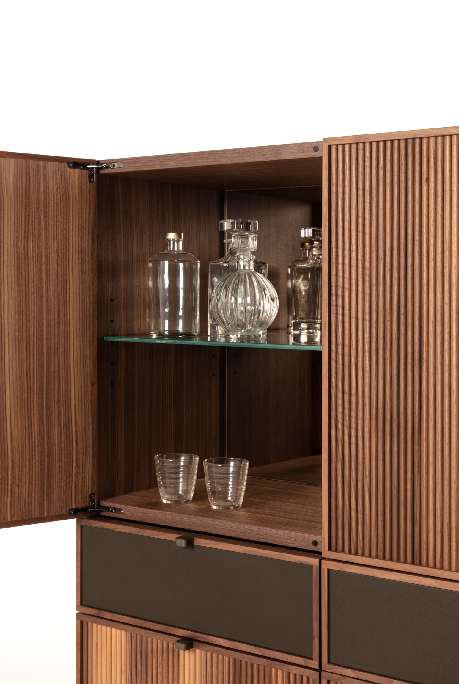 The interior breakdown is made with wooden or alternatively glass shelves.