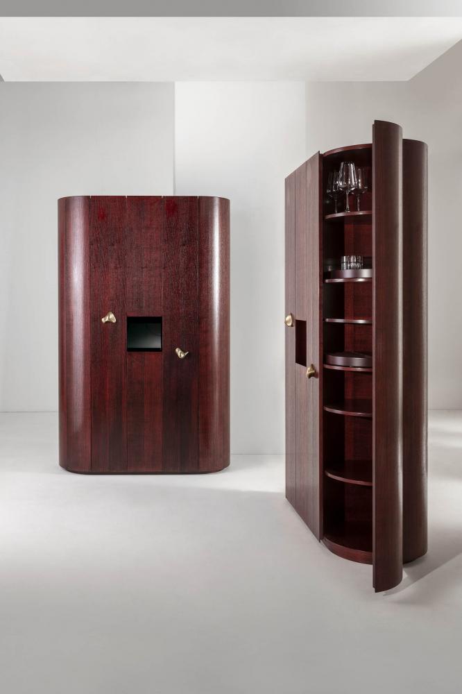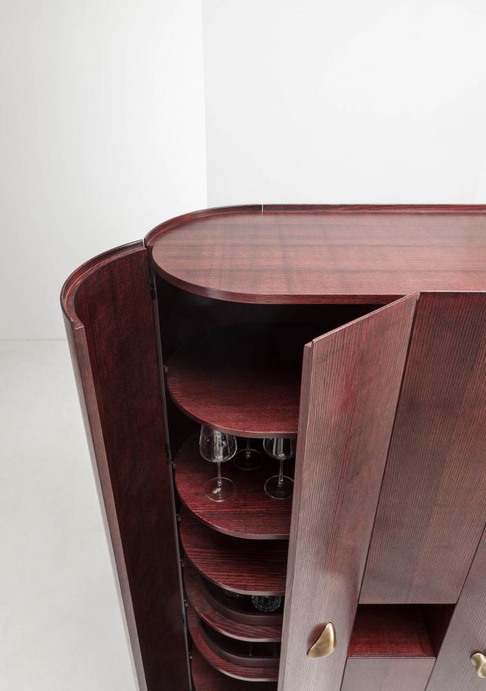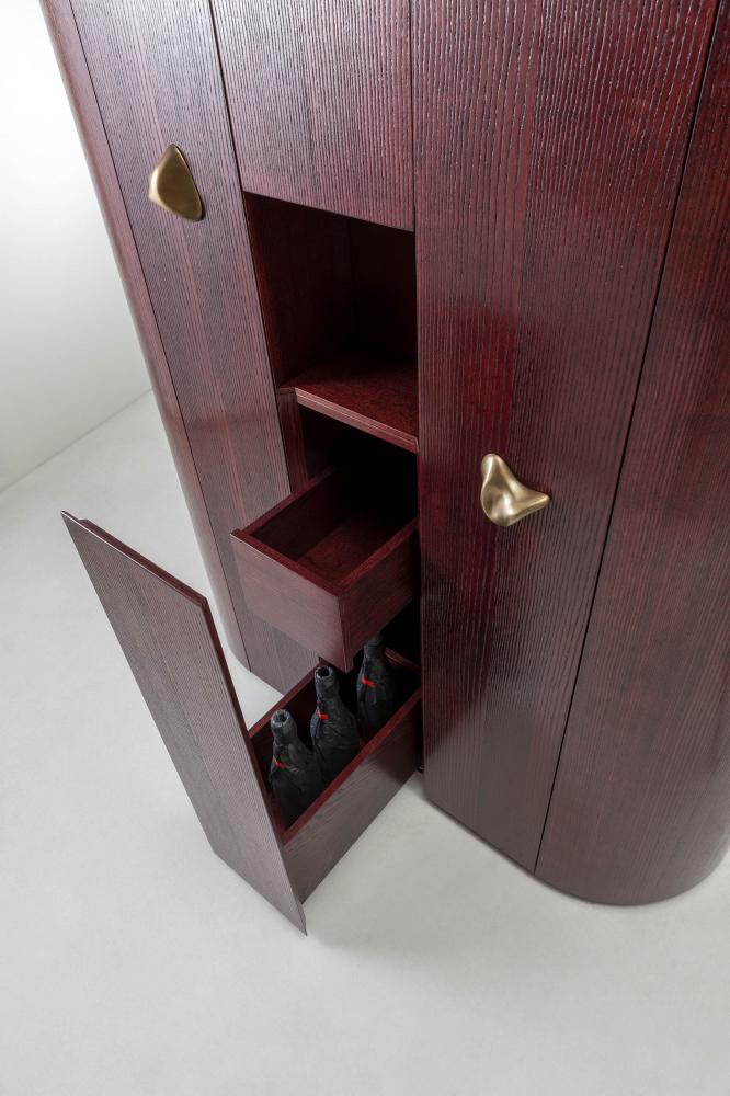 Inspired by the iconic Collectionist unit in fossil wood, this new container re-proposes and revises its design, enhancing the unique skills of our master craftsmen.