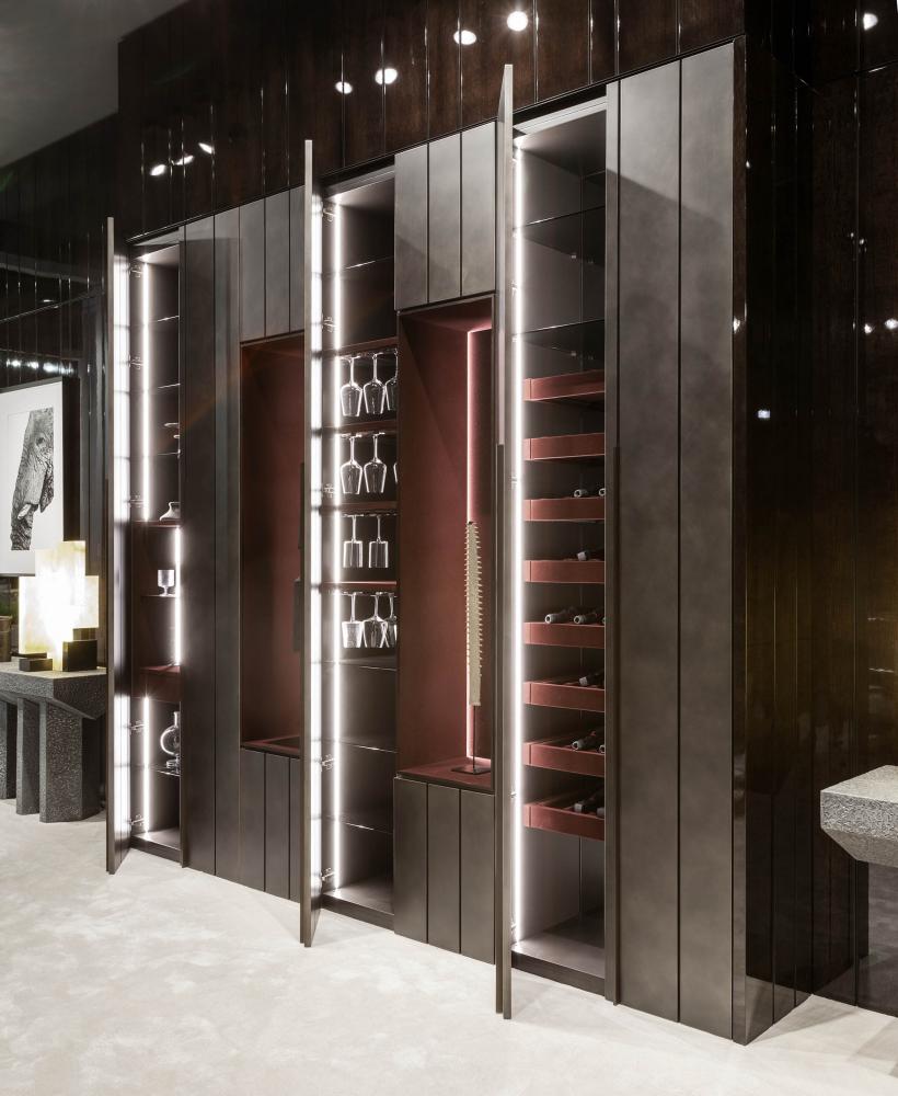 Open compartments, hidden LED lighting, drawers and shelves complete our proposals to guarantee our customers a unique and exclusive product that can be completely adapted to any compositional need.
