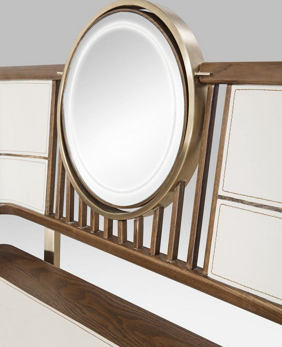 造型輕盈而流暢,圓鏡置于屏風之上,好似一輪明月爬上窗棱。