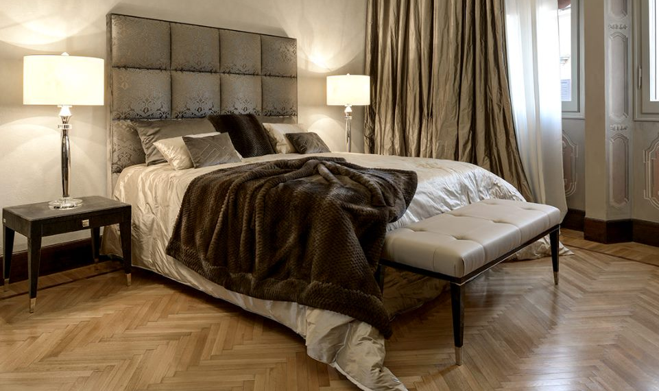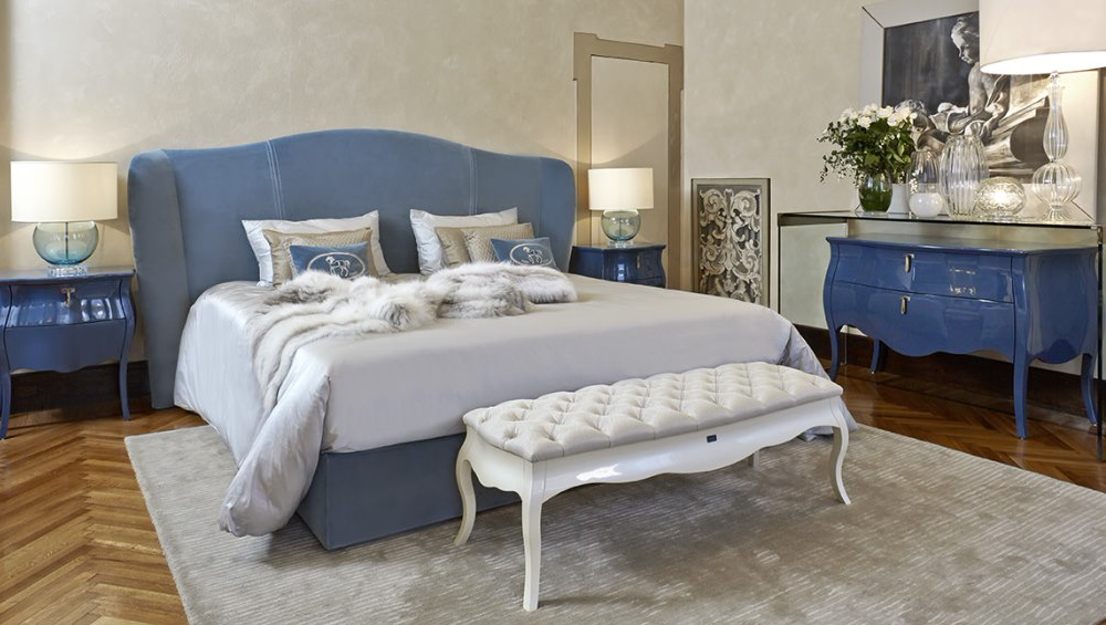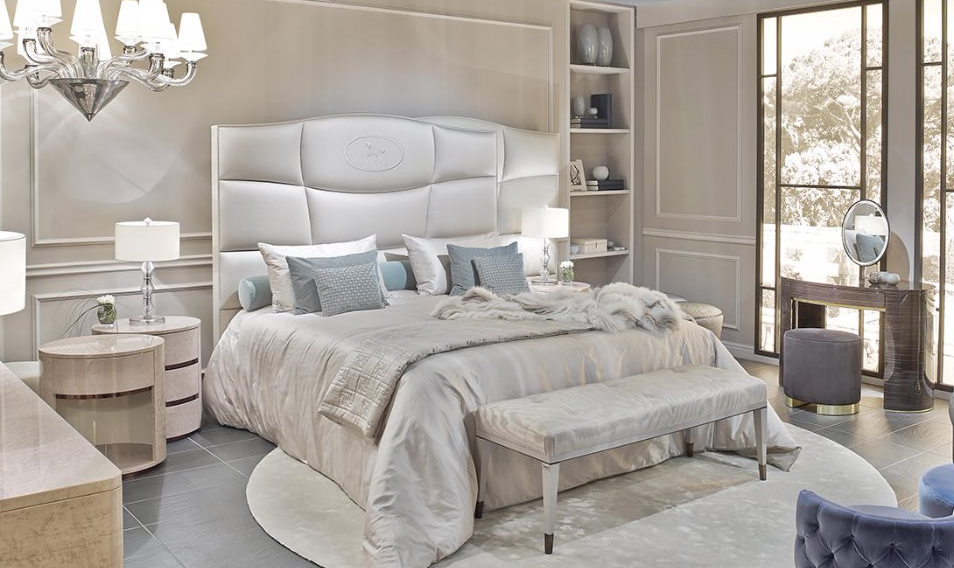 FENDI GEORGE系列,不規(guī)則手工鑲嵌式床頭拼接,讓這款床多了幾分柔美。