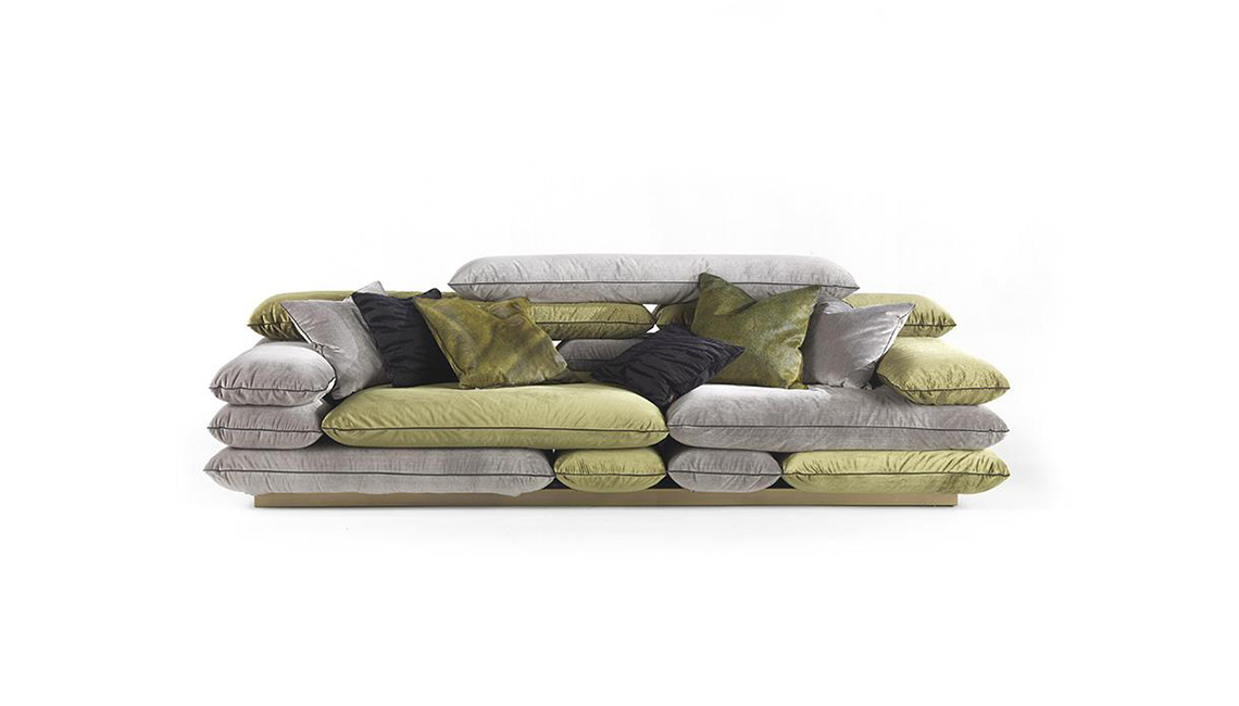 這款叫Baltimora的沙發,在灰的色調上,又融入了粉色。