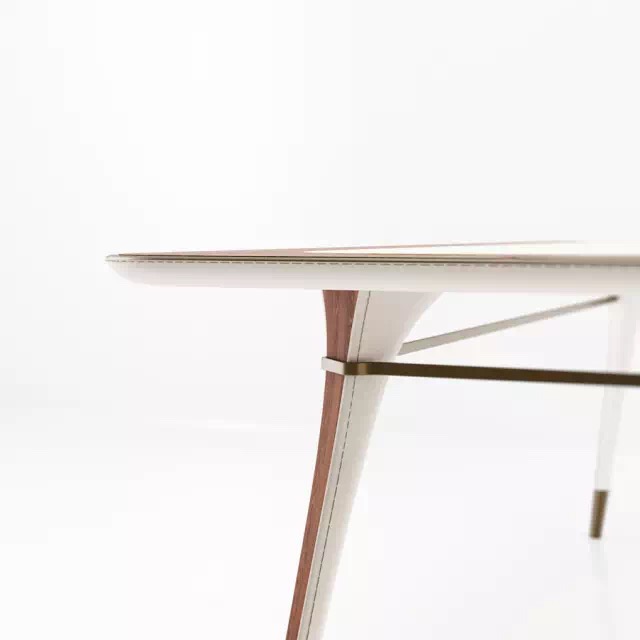 MADISON玄邊桌,圓潤的角度,溫和的色澤,搭配金色的裝飾。