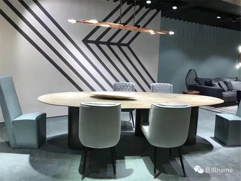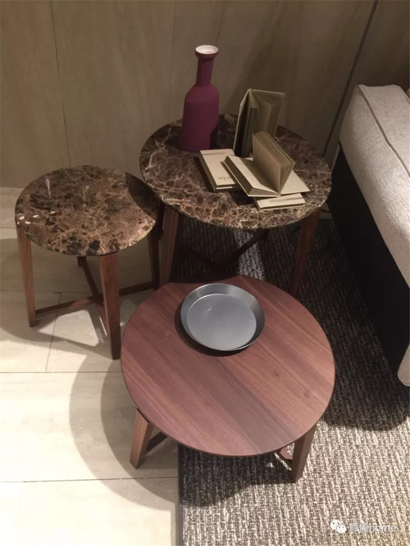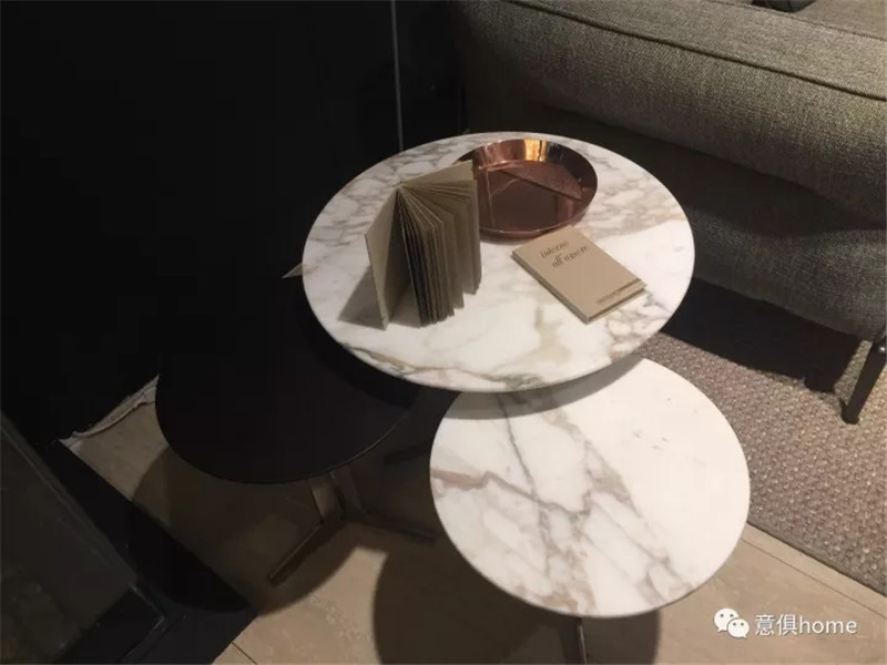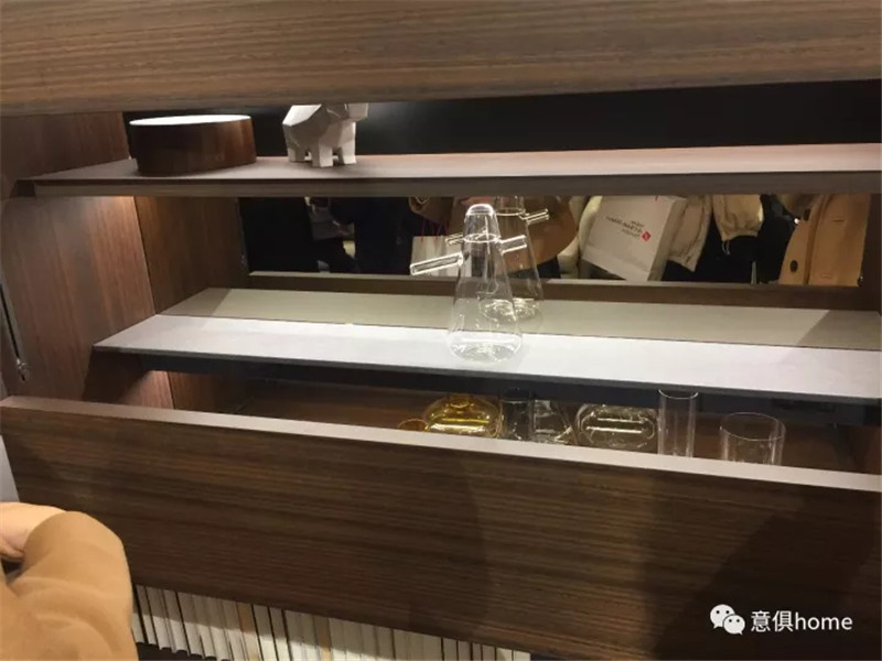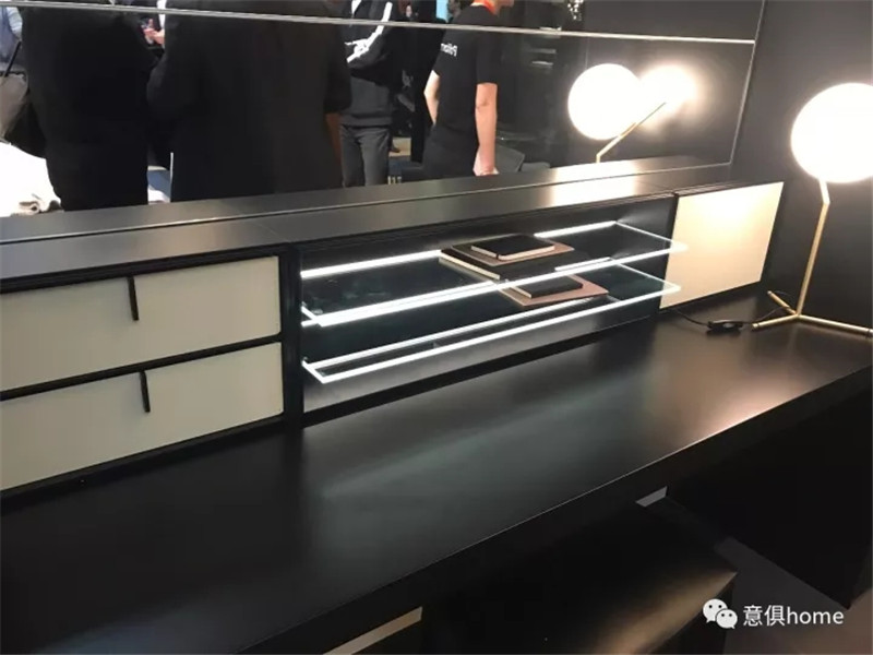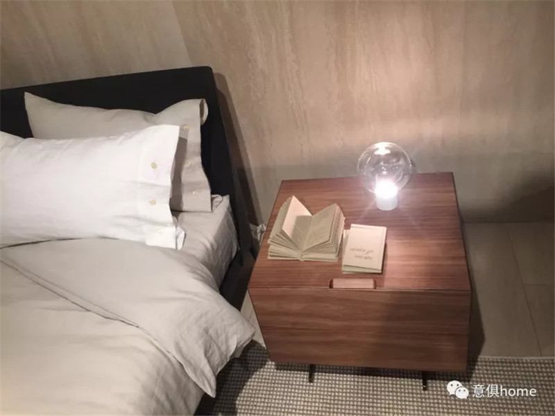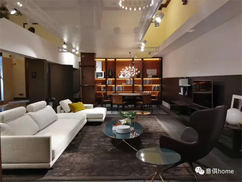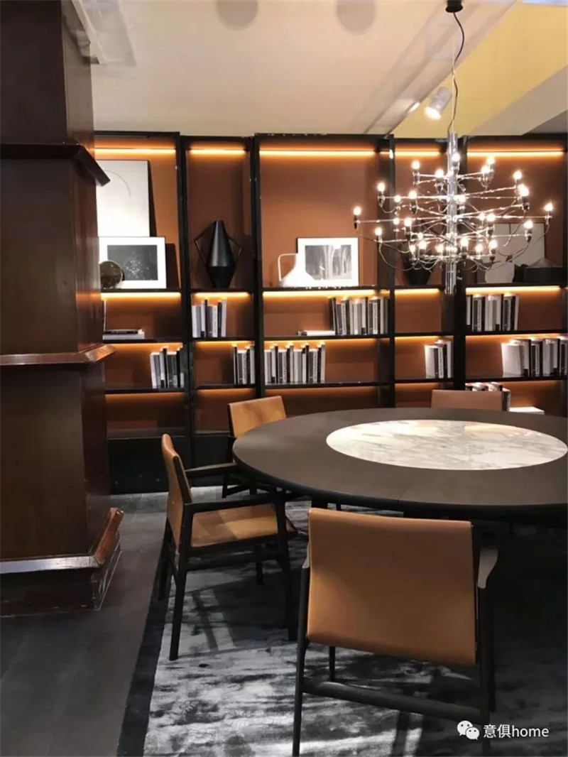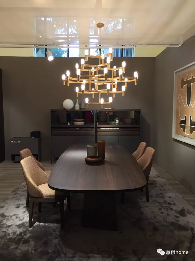 MOLTENI&C將展區分為餐廳區、客廳區、開放式廚房、臥室及衣帽間,此次的產品,皆考慮到了人們的生活方式和細節,暖黃的燈光下,MOLTENI&C展區倍感溫馨!
